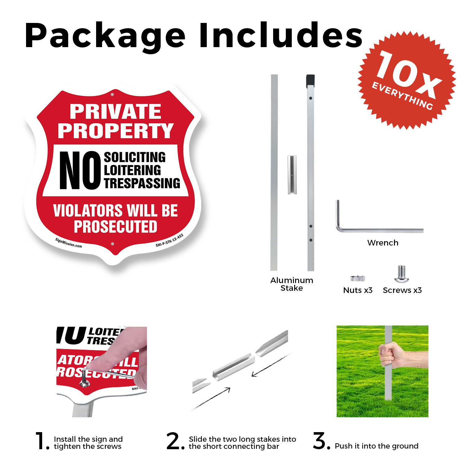 Private Property Shield Sign No Soliciting Loitering Tre Shield Sign With Stake