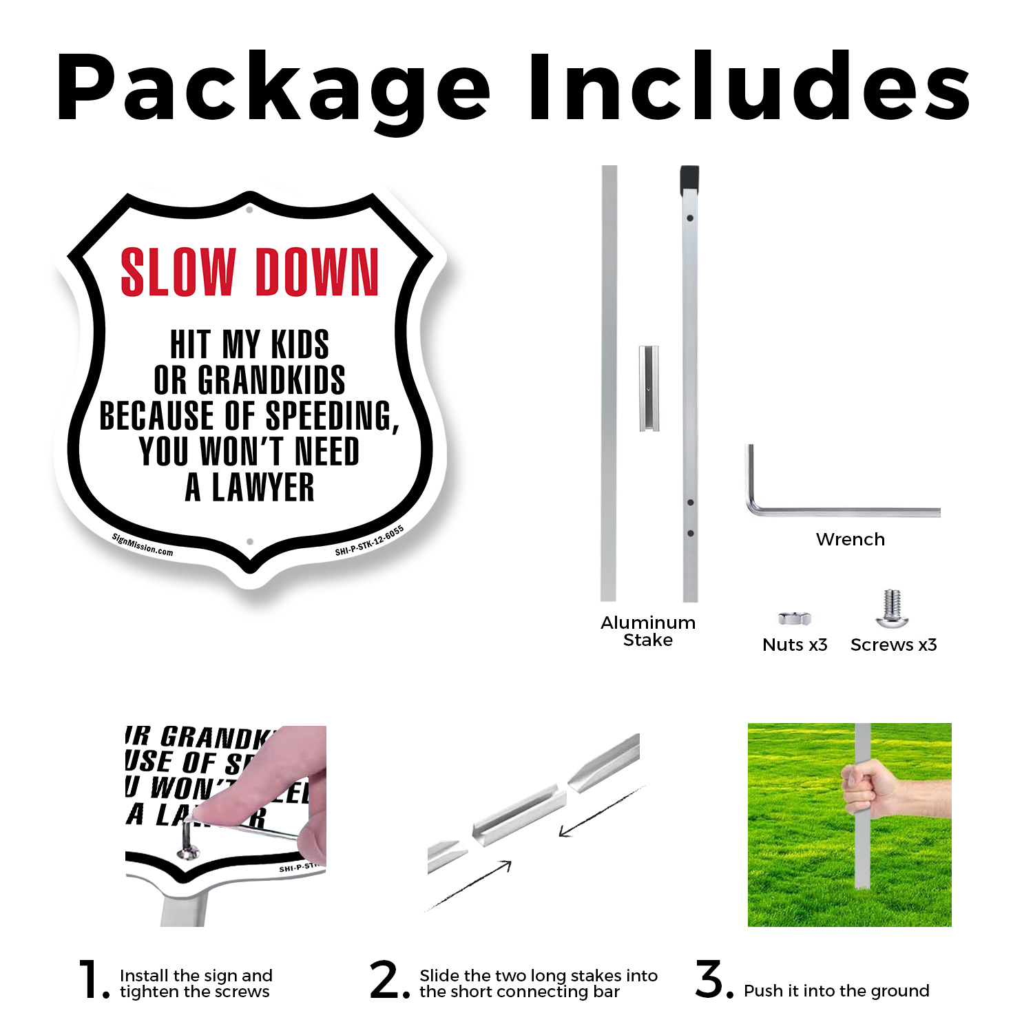 Slow Down Hit My Kids Or Grandkids Shield Shaped Sign With Stake
