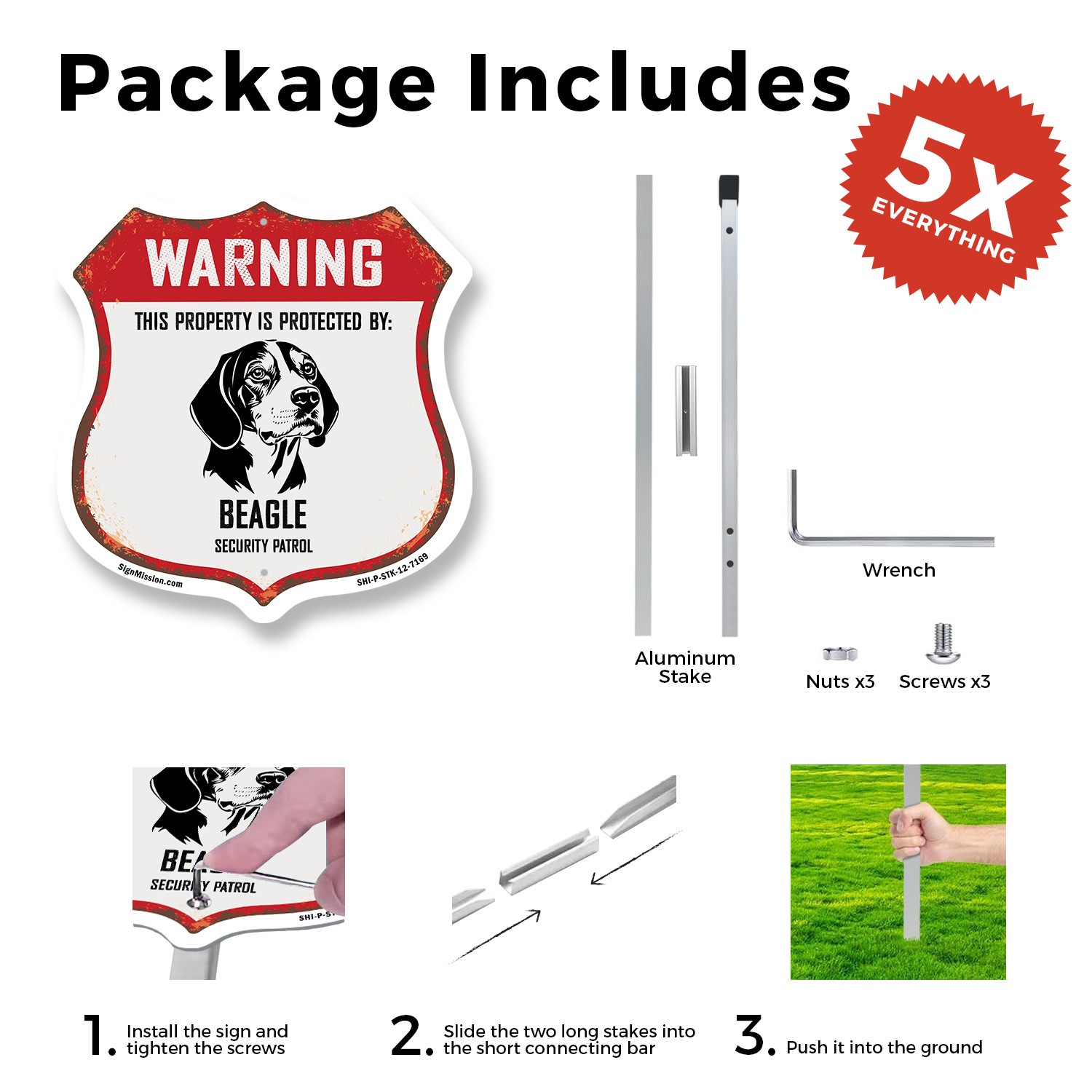 Warning This Property is Protected by Beagle Made in the Shield Sign With Stake