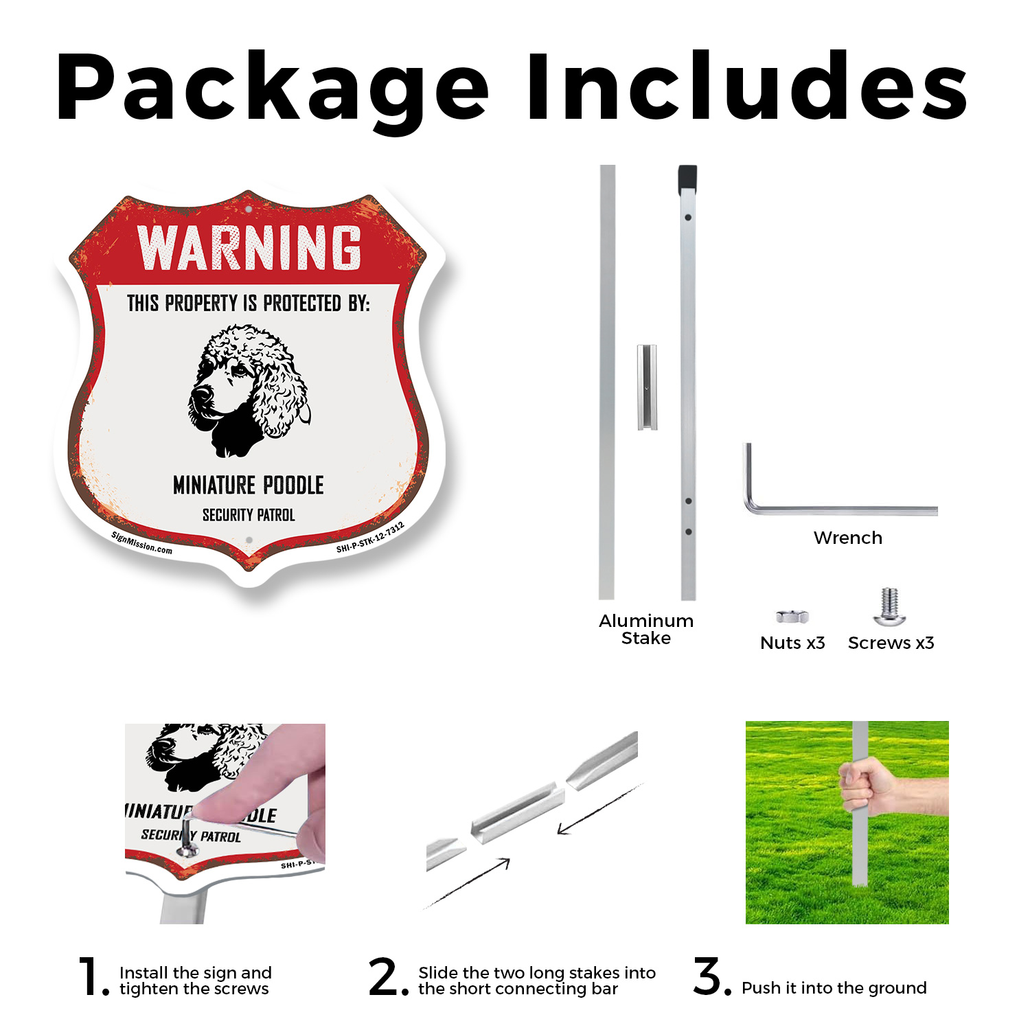 как выглядит Warning Property Protected by Miniature Poodle Made in t Shield Sign With Stake фото