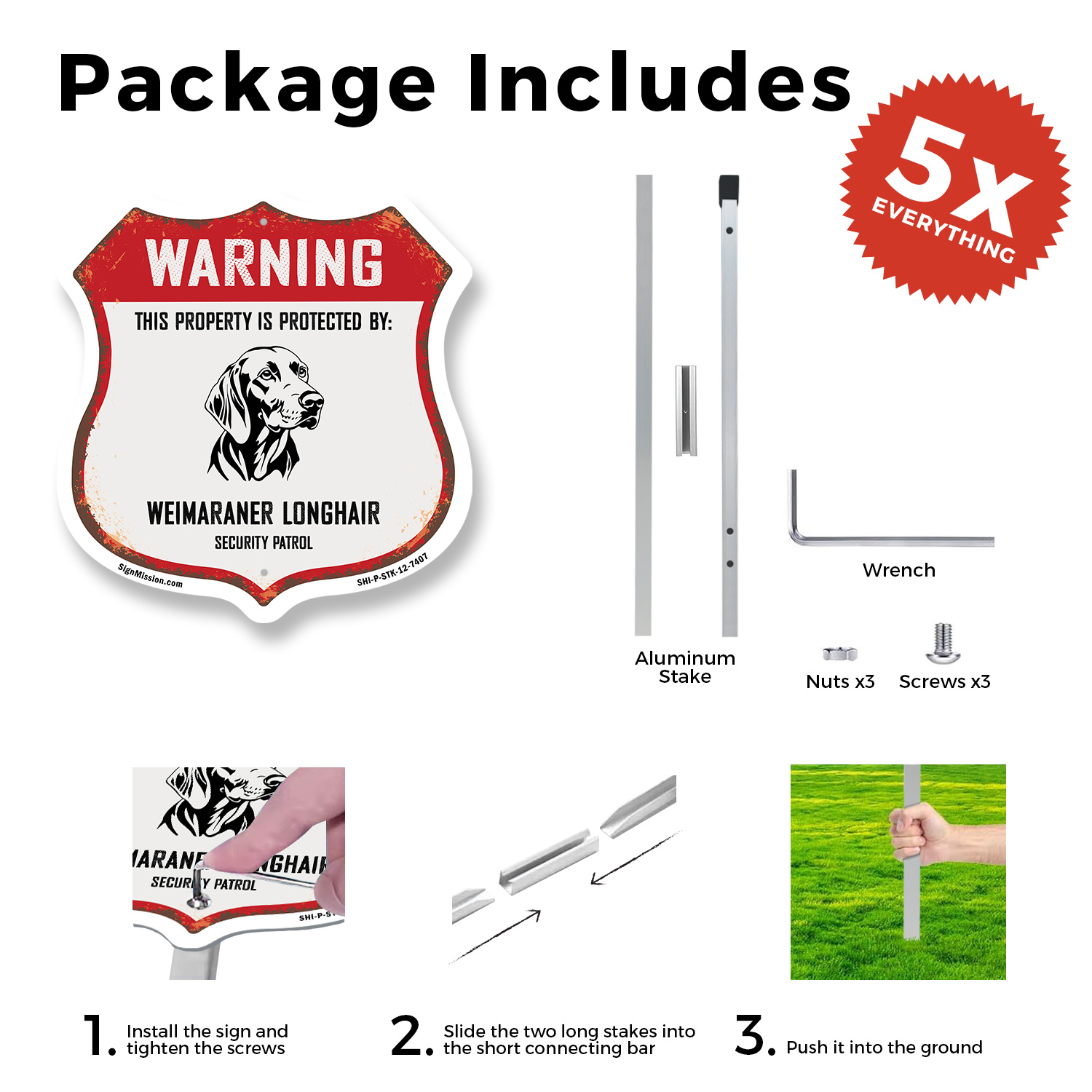 как выглядит Warning Property Protected by Weimaraner Longhair Made i Shield Sign With Stake фото