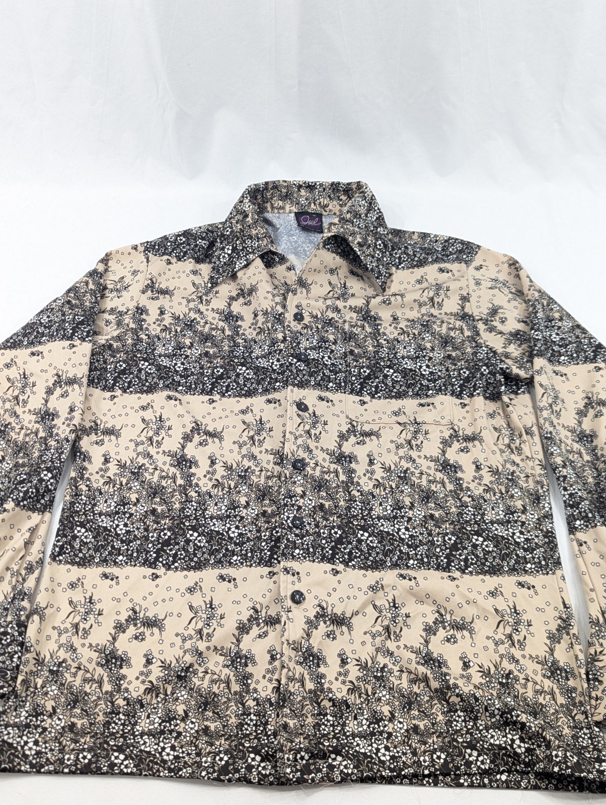 как выглядит vtg 70s JOEL OF CALIFORNIA silky polyester disco shirt floral print slim fit MED фото