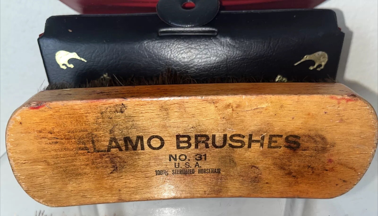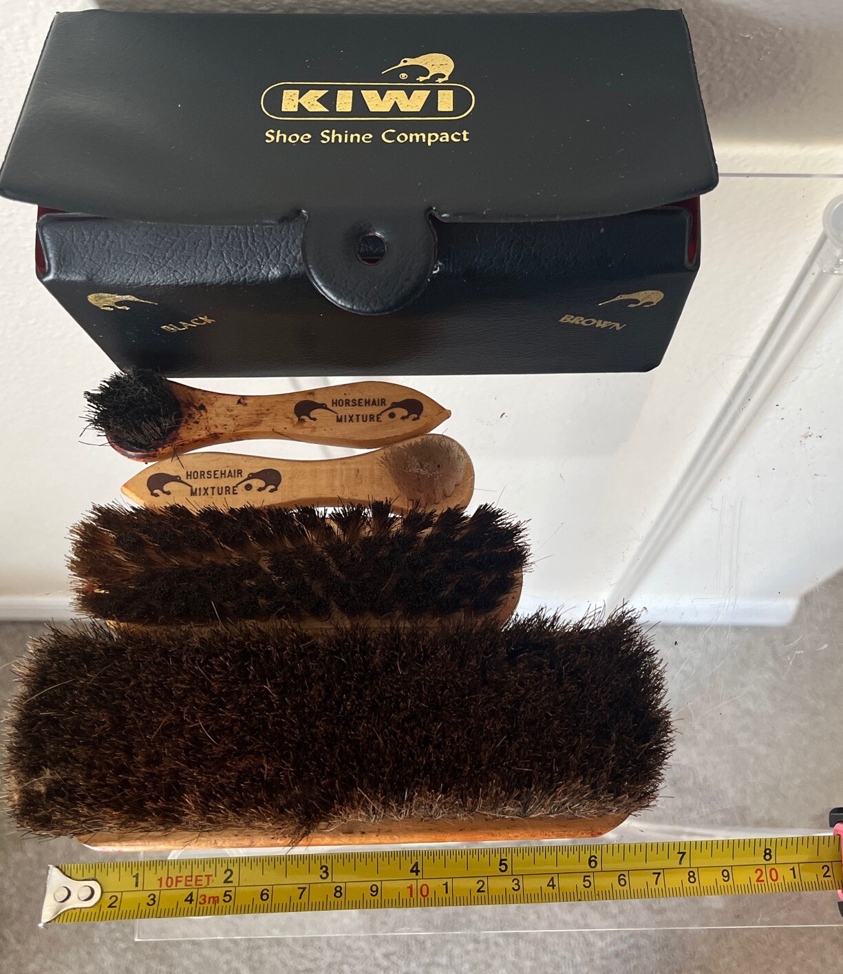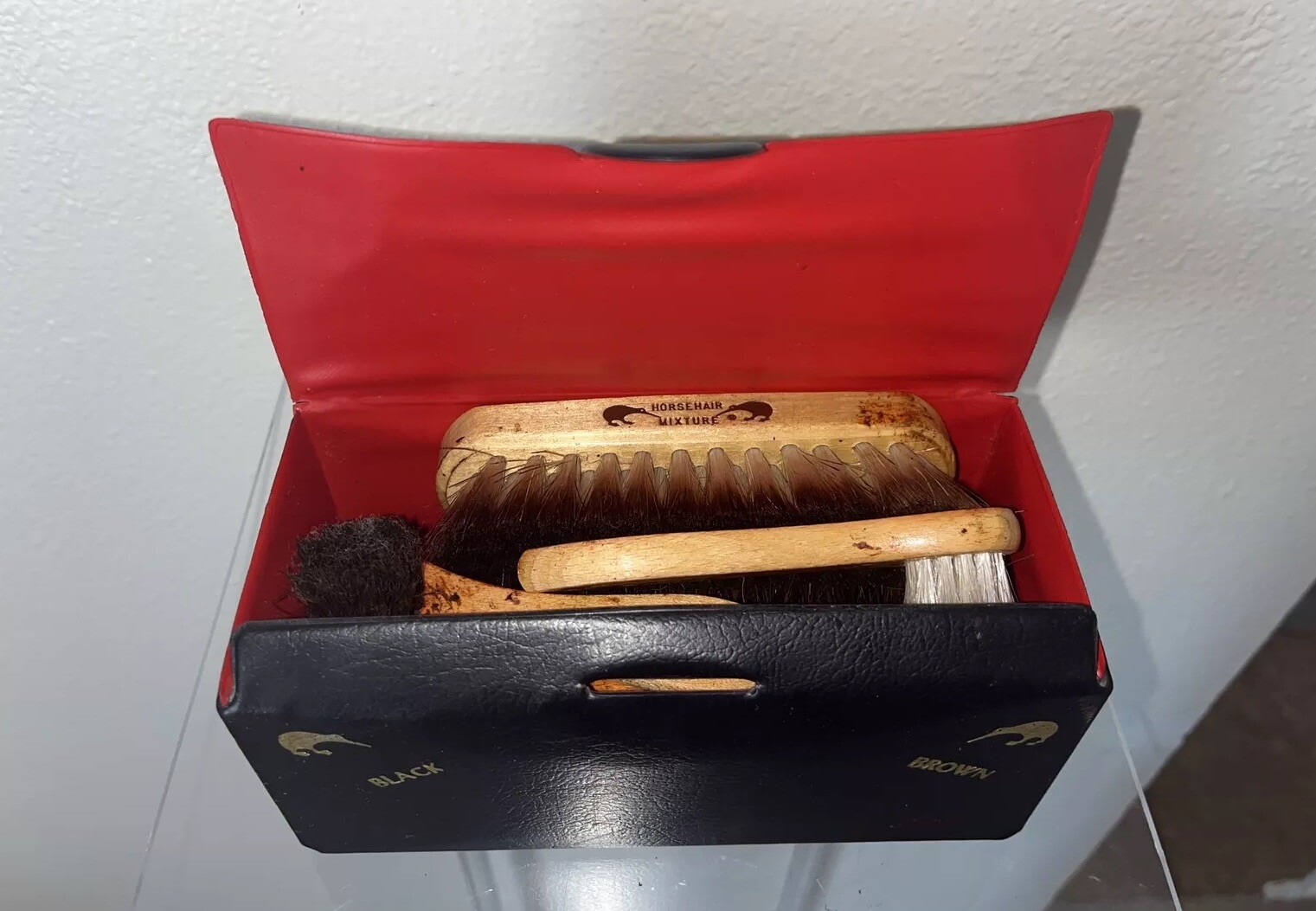 VINTAGE KIWI SHOE SHINE COMPACT TRAVEL KIT Leather CASE BRUSHES
