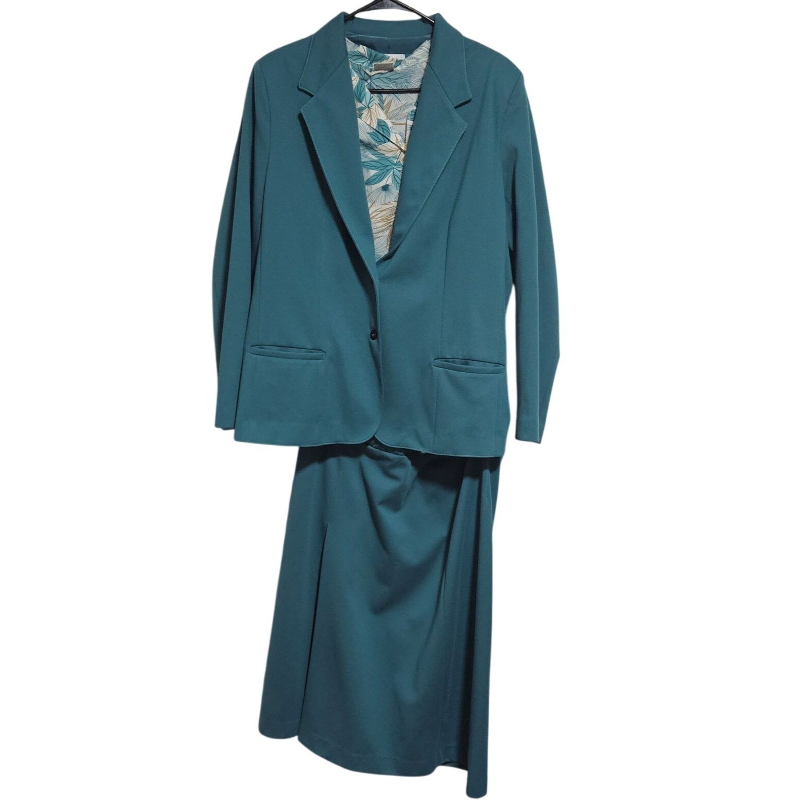 Vintage Pykettes Teal 3 Piece Suit Set Womens Size 18 Floral Blouse Blazer Skirt
