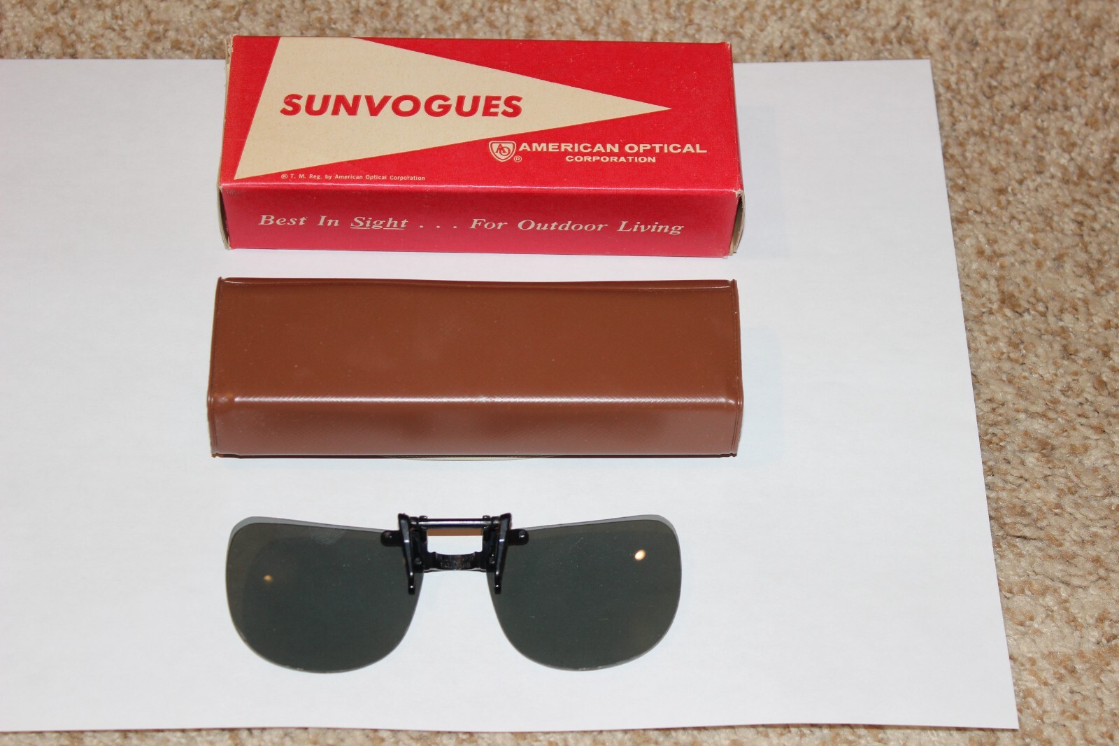 VINTAGE AMERICAN OPTICAL MEN'S CLIP ON SUNGLASSES EYEGLASSES OLD STOCK