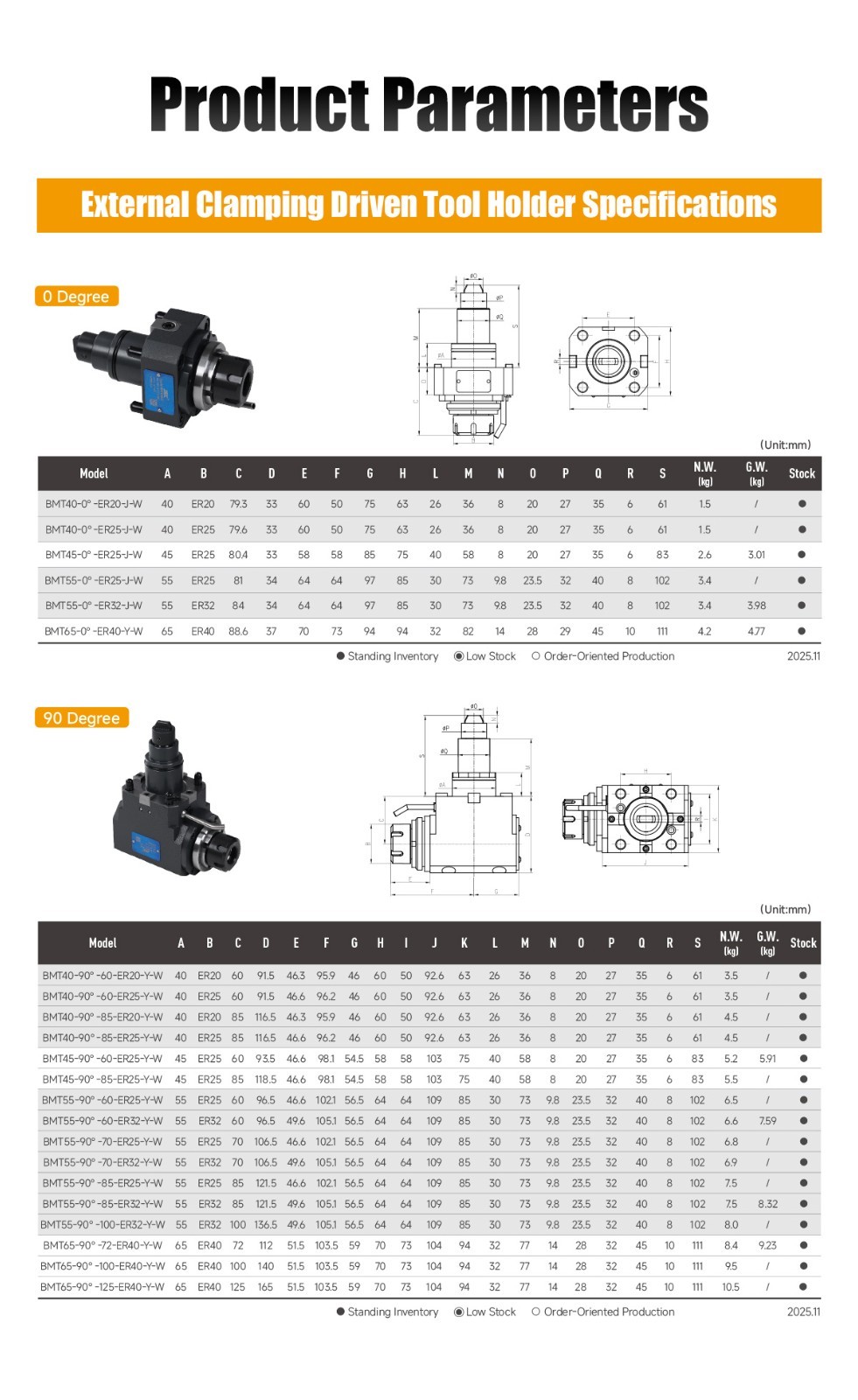 BMT45-0 -ER25 Live Tool Holder for CNC Milling Turret BMT 45 Driven Tool Holders