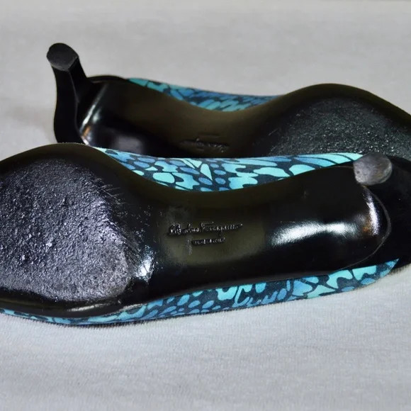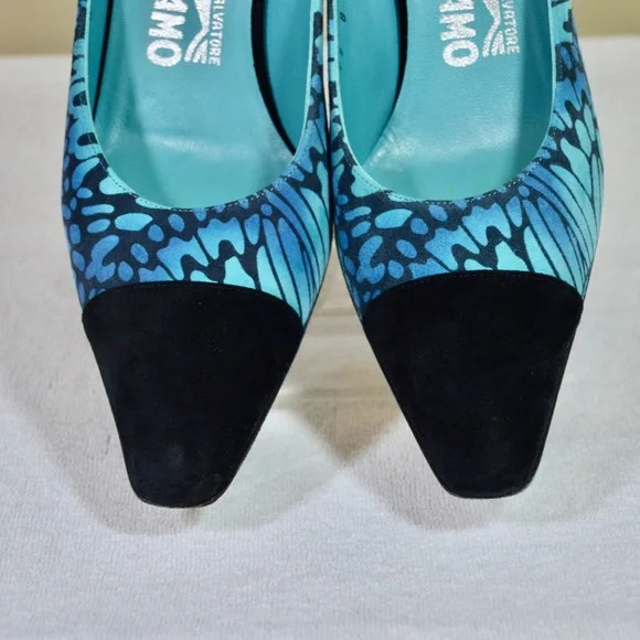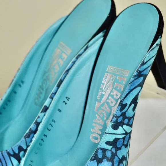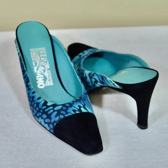 Salvatore Ferragamo Black/Turquoise Cap Toe Multicolor Mules 8AA