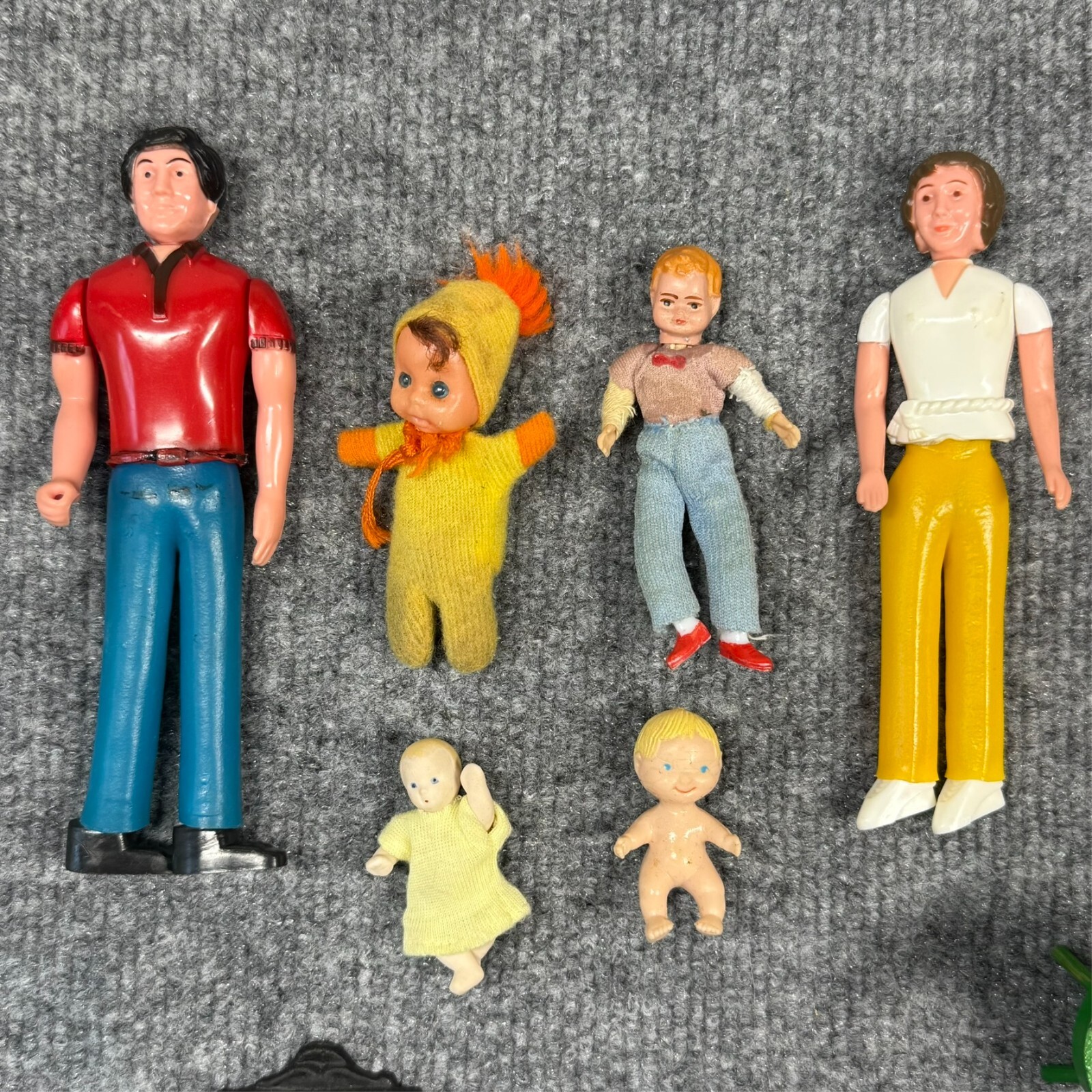 Mix Dollhouse Miniature Doll Family Dad Mom Kids Furniture Wood Cast Iron Oven