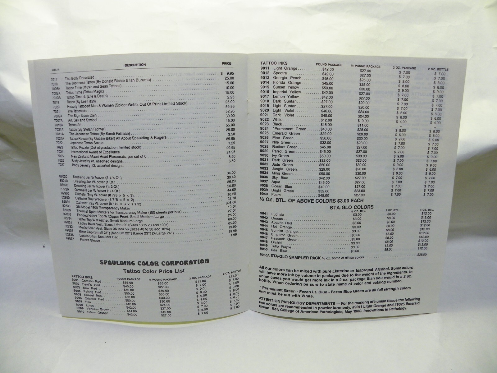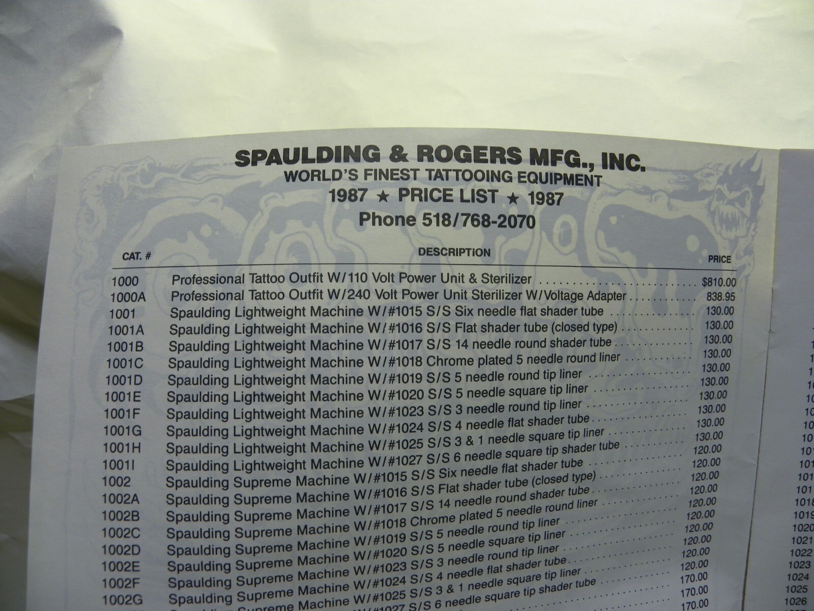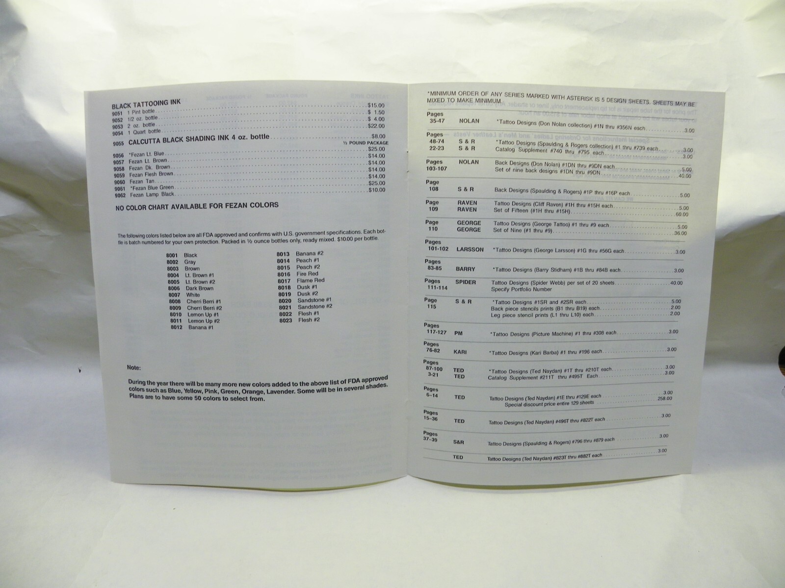 Spaulding and Rogers 1987 Tattoo Catalog Price List. In great condition.