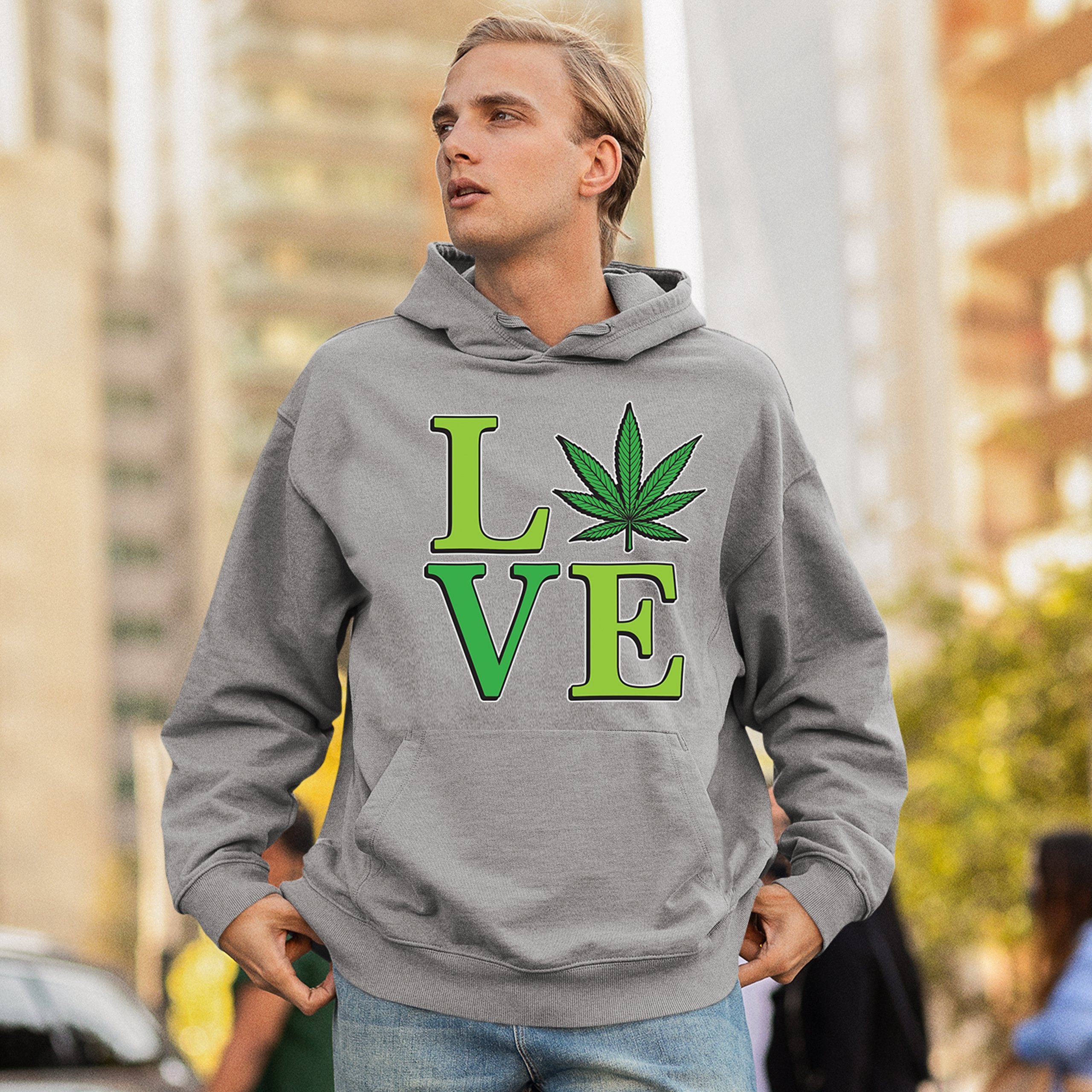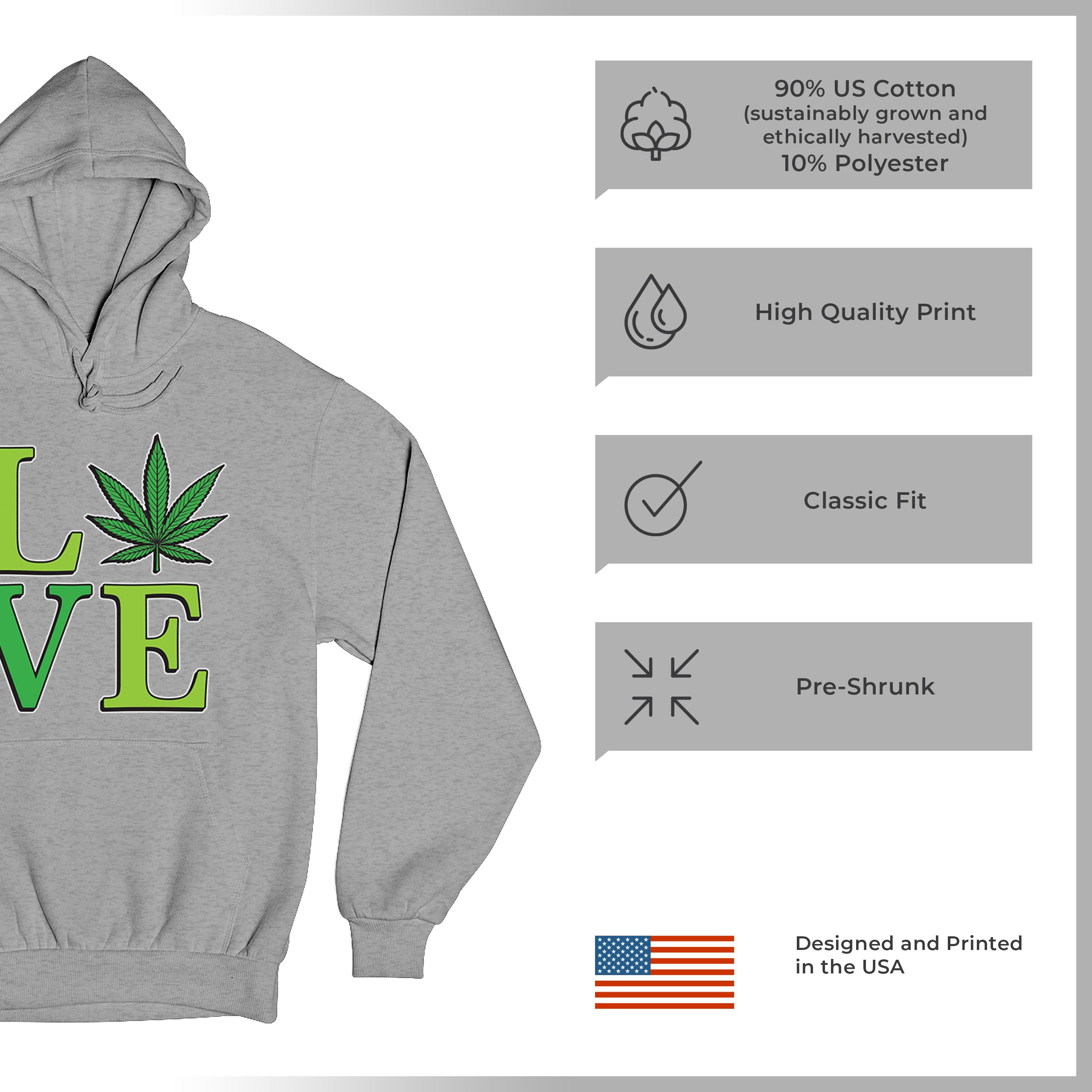 Love Weed Leaf Sweatshirt Cannabis 420 Wordplay Marijuana Stoner Plant Hoodie