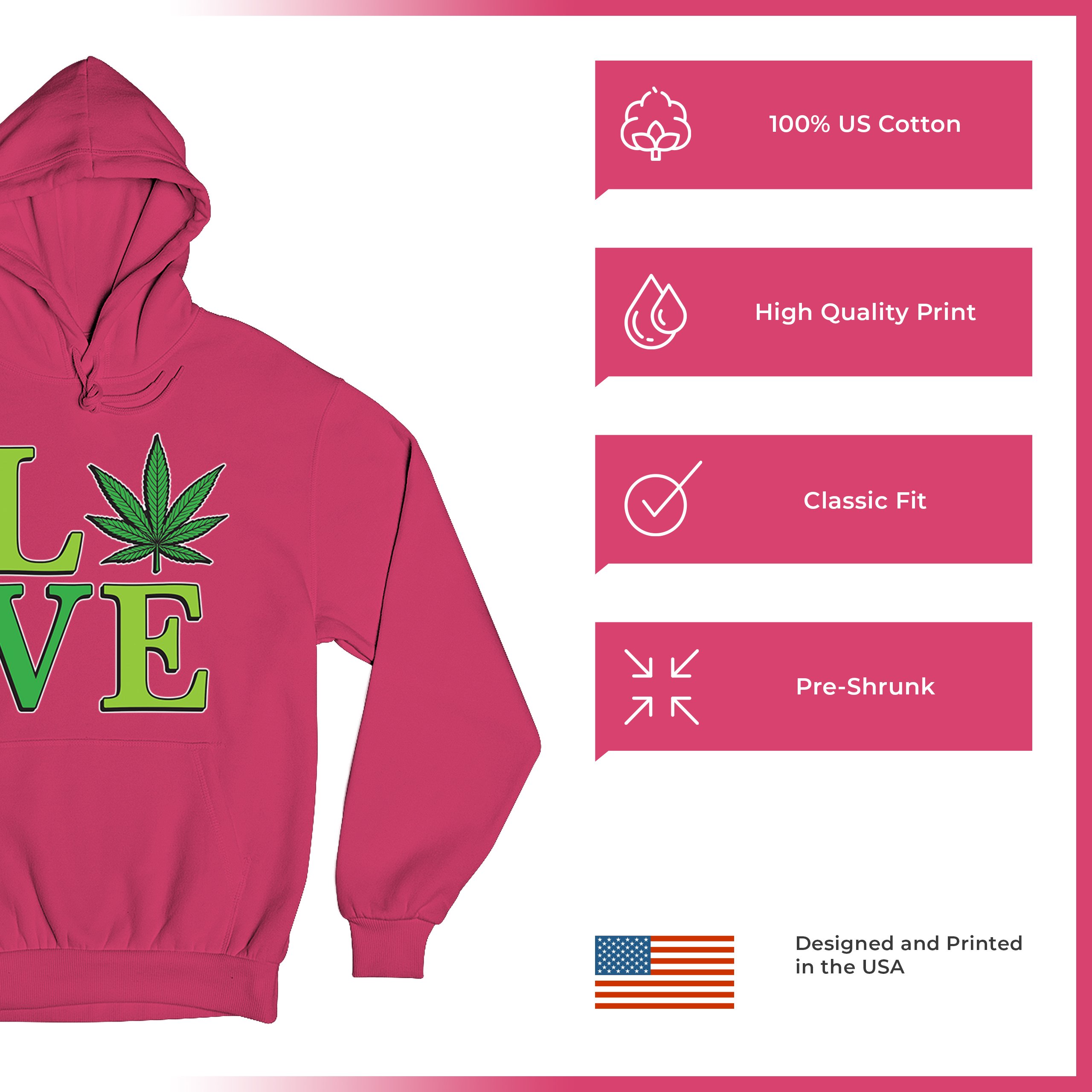 Love Weed Leaf Sweatshirt Cannabis 420 Wordplay Marijuana Stoner Plant Hoodie
