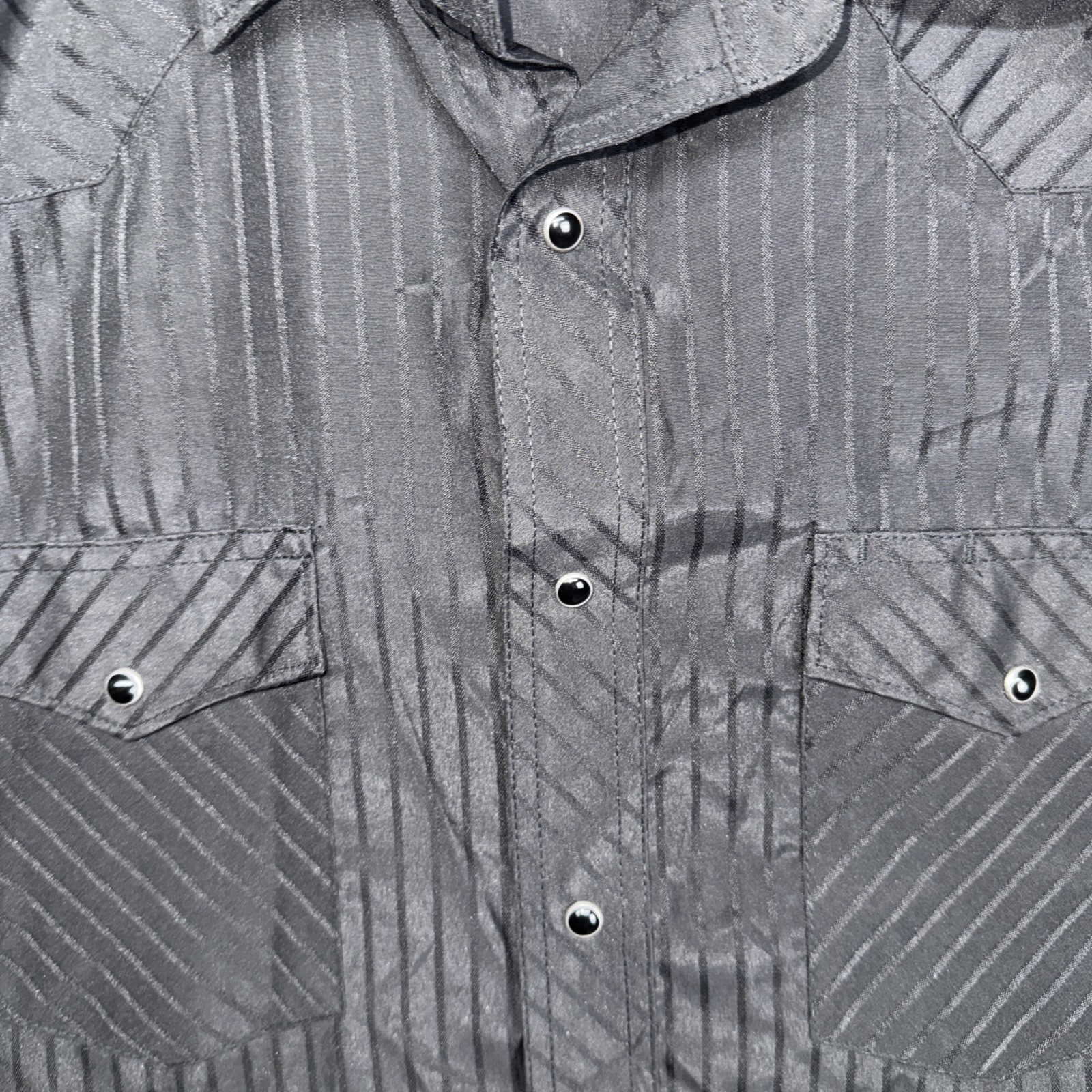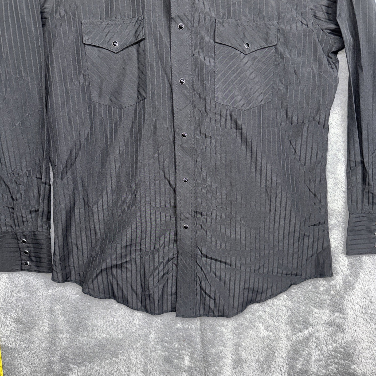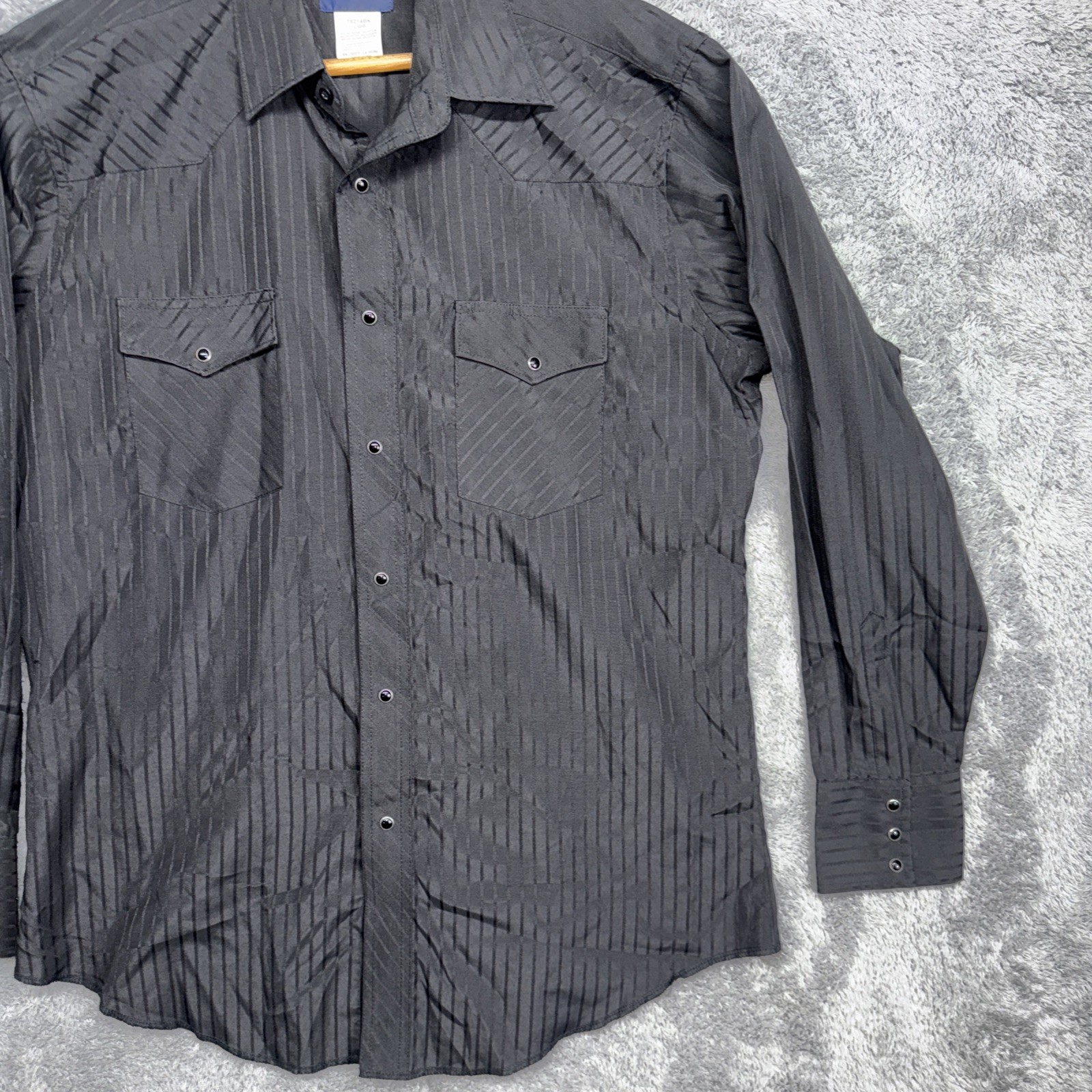 как выглядит Mens Wrangler Black Dress Shirt Size Large Pearl Snaps Long Sleeve Pockets фото
