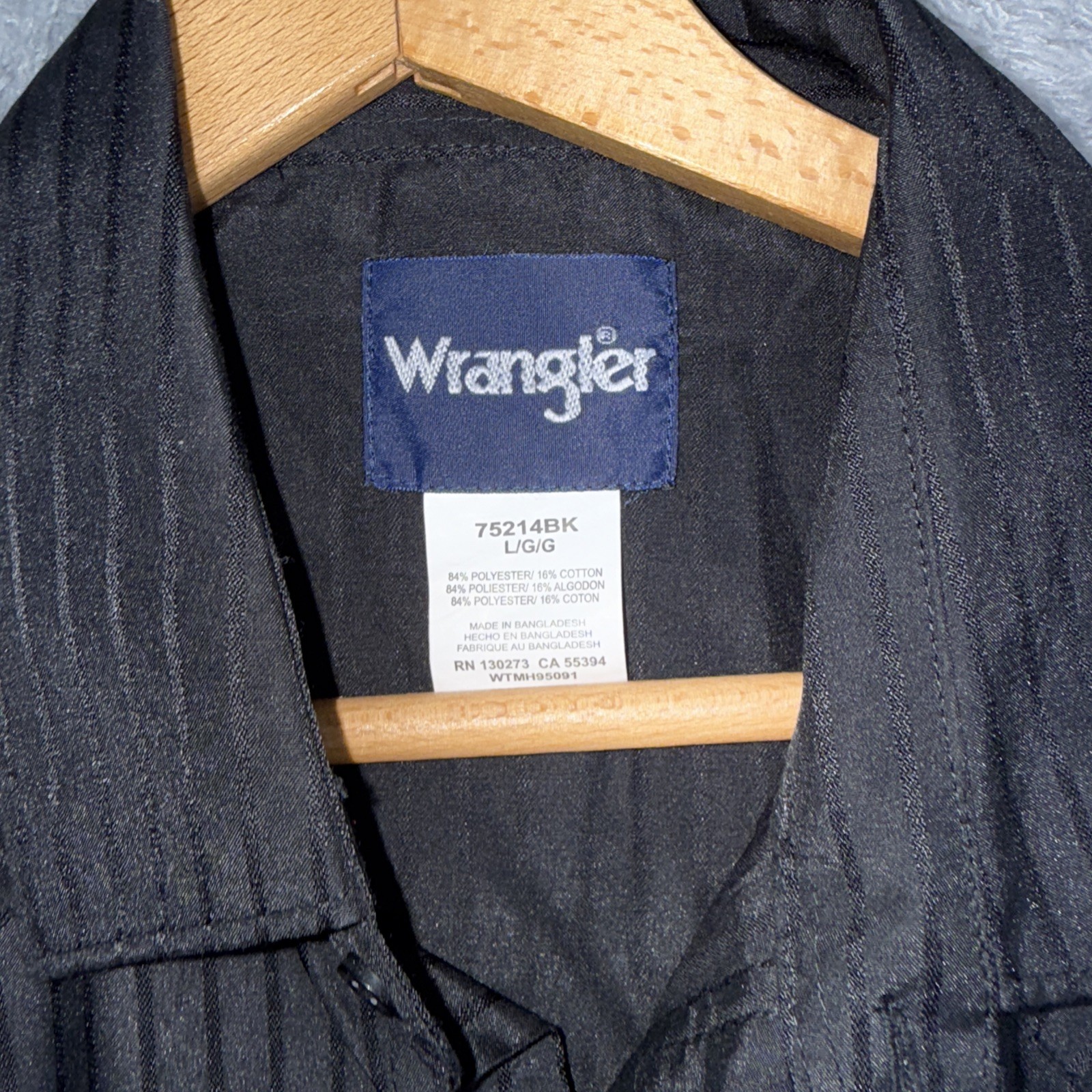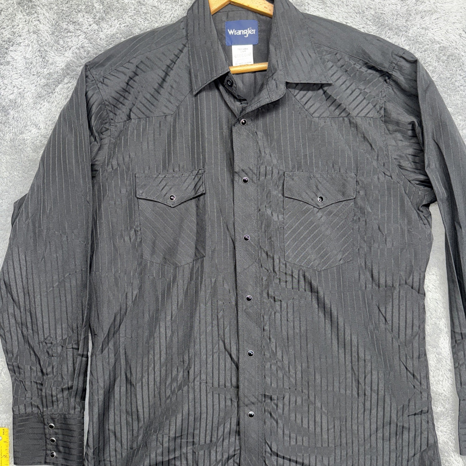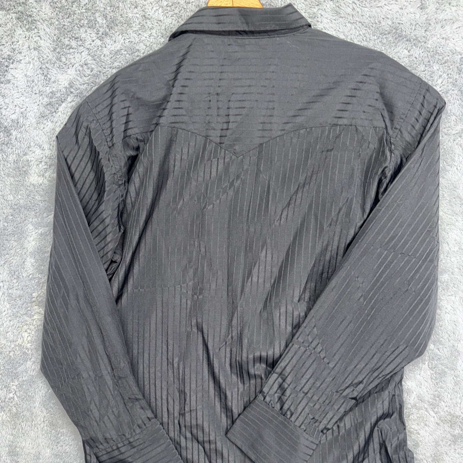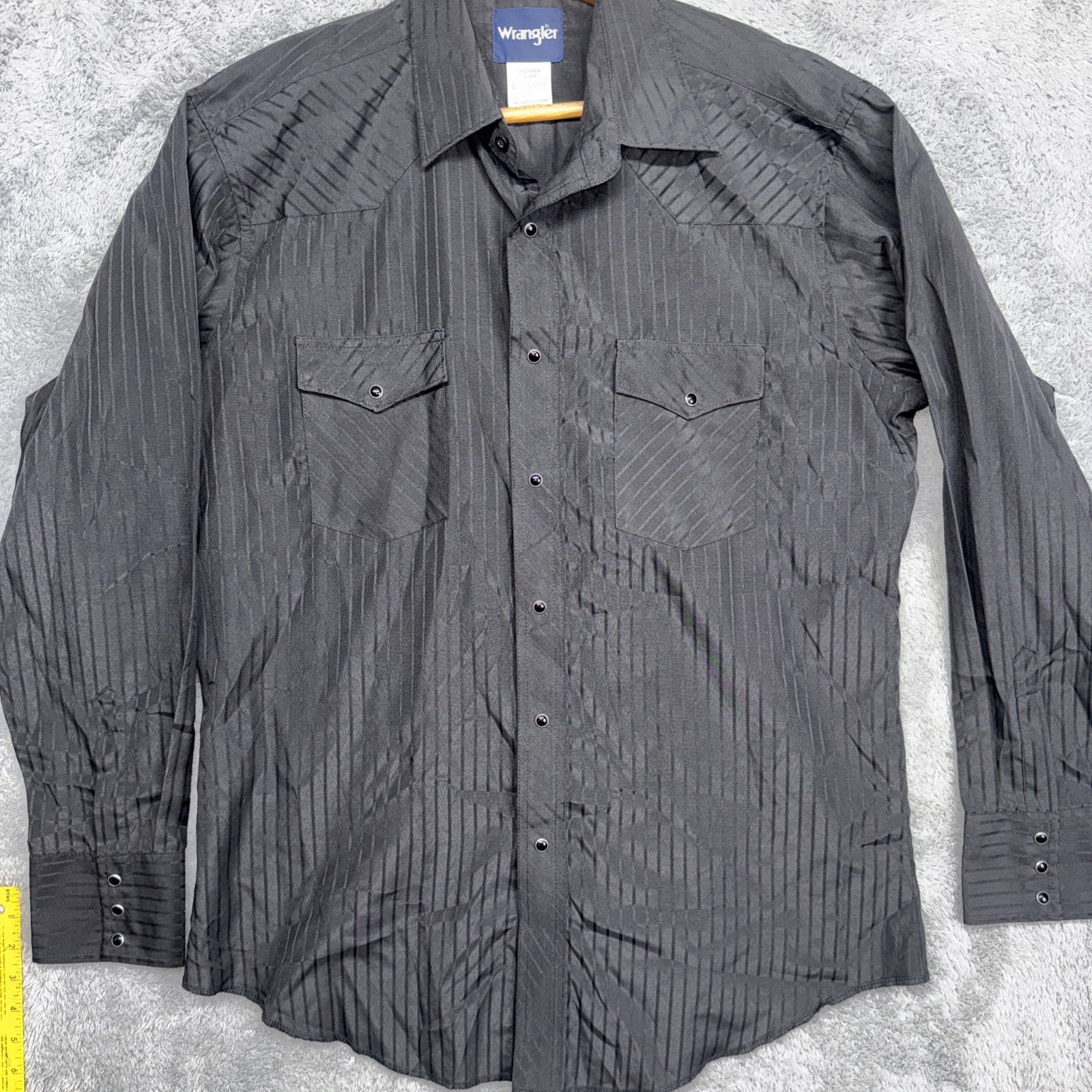 как выглядит Mens Wrangler Black Dress Shirt Size Large Pearl Snaps Long Sleeve Pockets фото