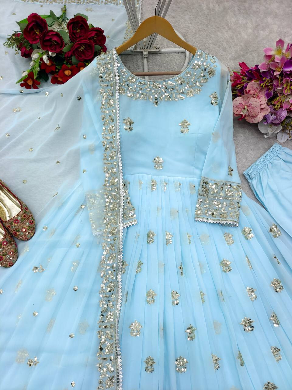 Gown Work: Heavy Embroidery 5mm Sequence Work With Full-Sleeve W