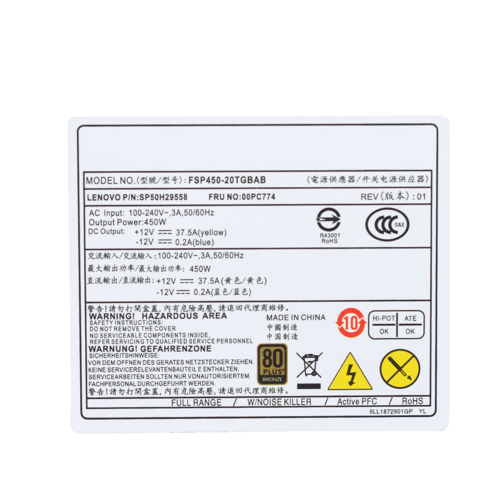 For Lenovo M310 M410 M428 M510 450W FSP450-20TGBAB 00PC774 10 4pin Power Supply