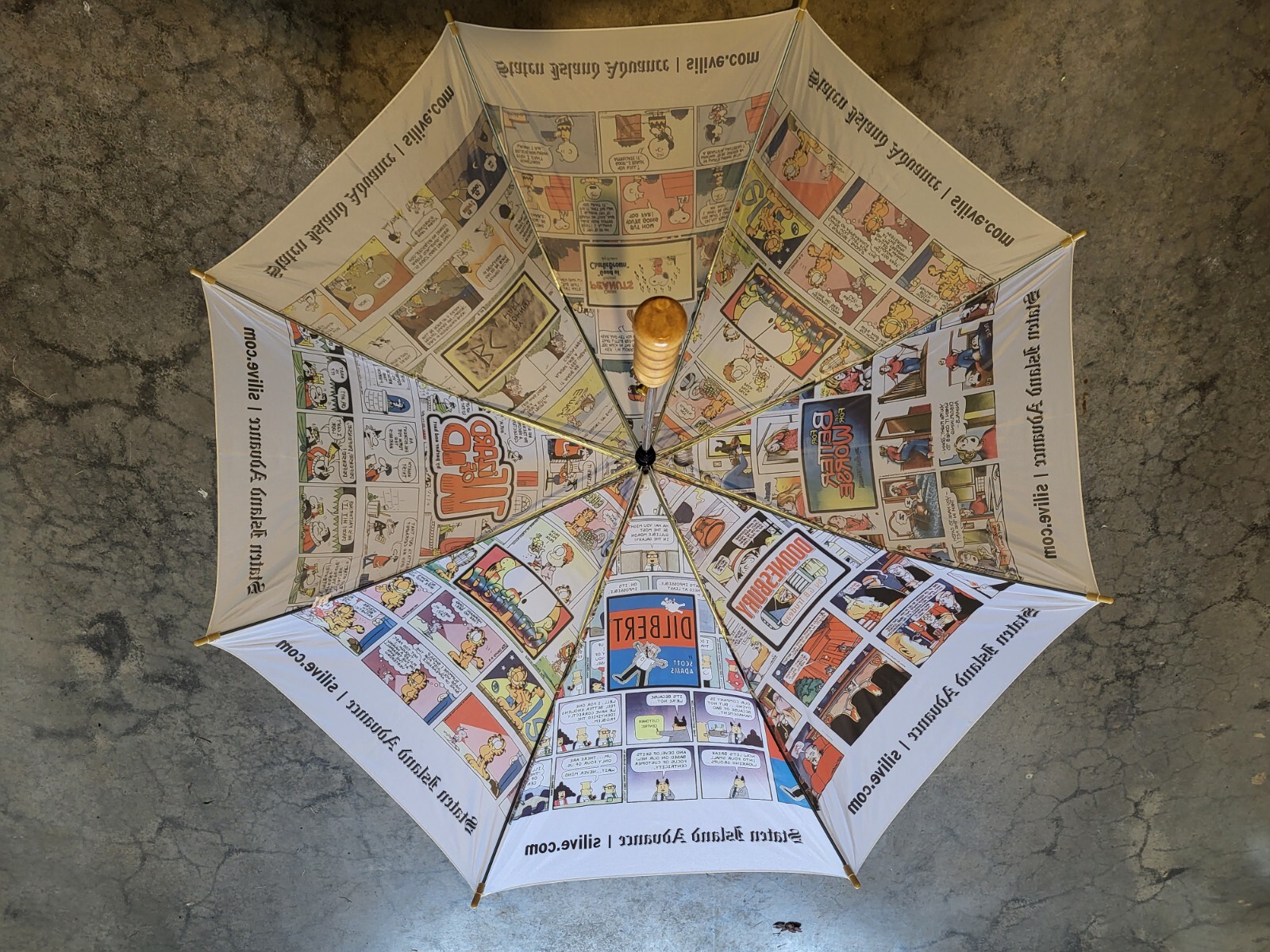 как выглядит Staten Island Advance Cartoon Umbrella NEW WITH TAG 33" closed фото