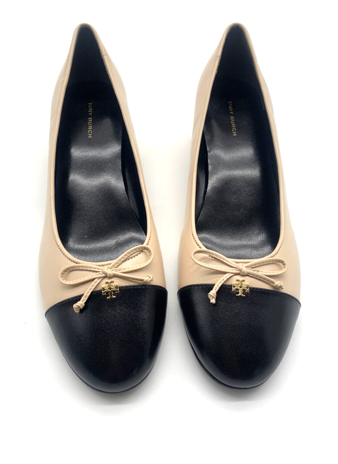 как выглядит AUTHENTIC Tory Burch Bicolor Cap-Toe Ballerina Pumps Size 8 US фото