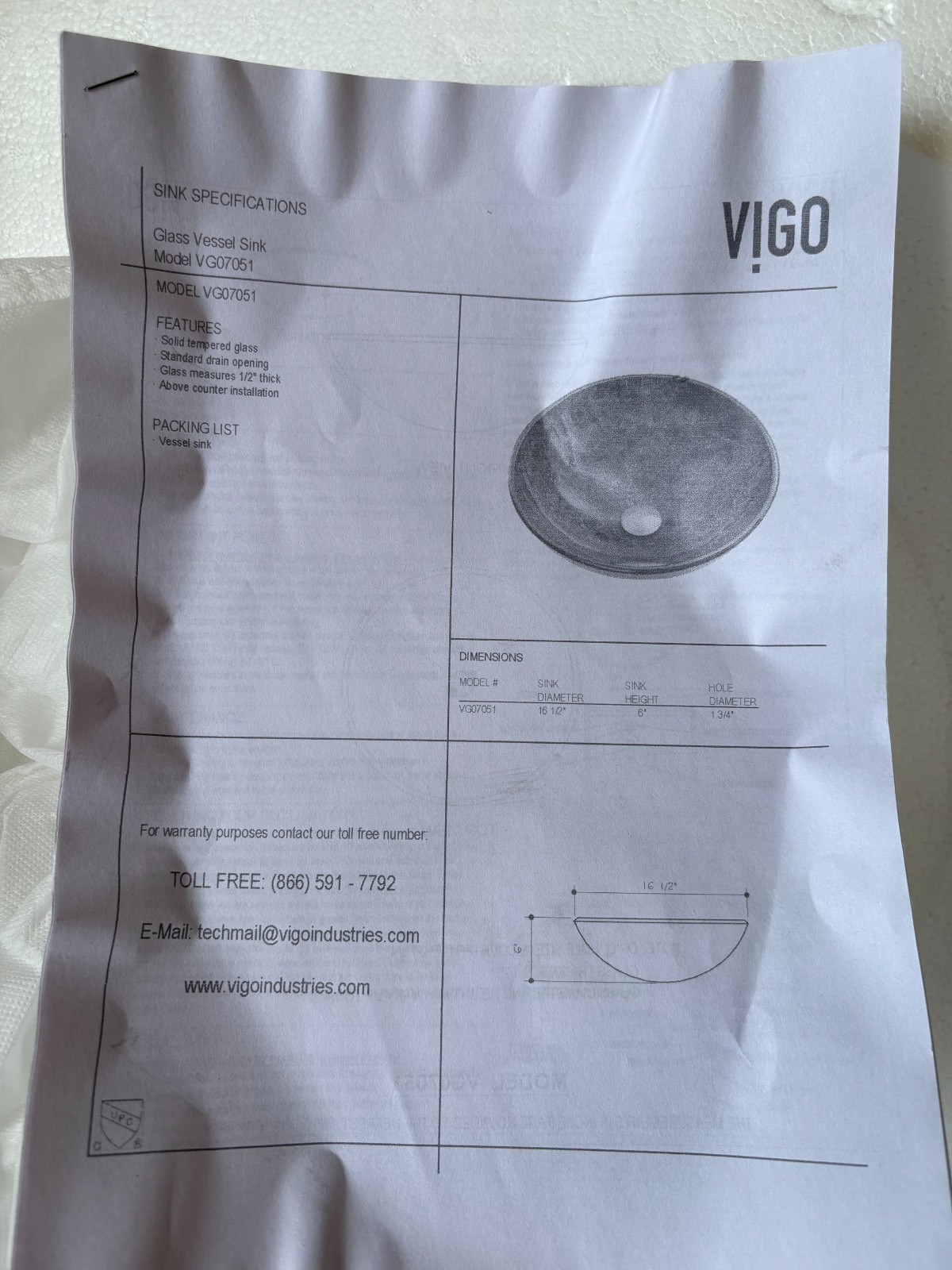 как выглядит Vigo VGO7051 Glass Vessel Bathroom Sink - Black - NEW Open Box фото