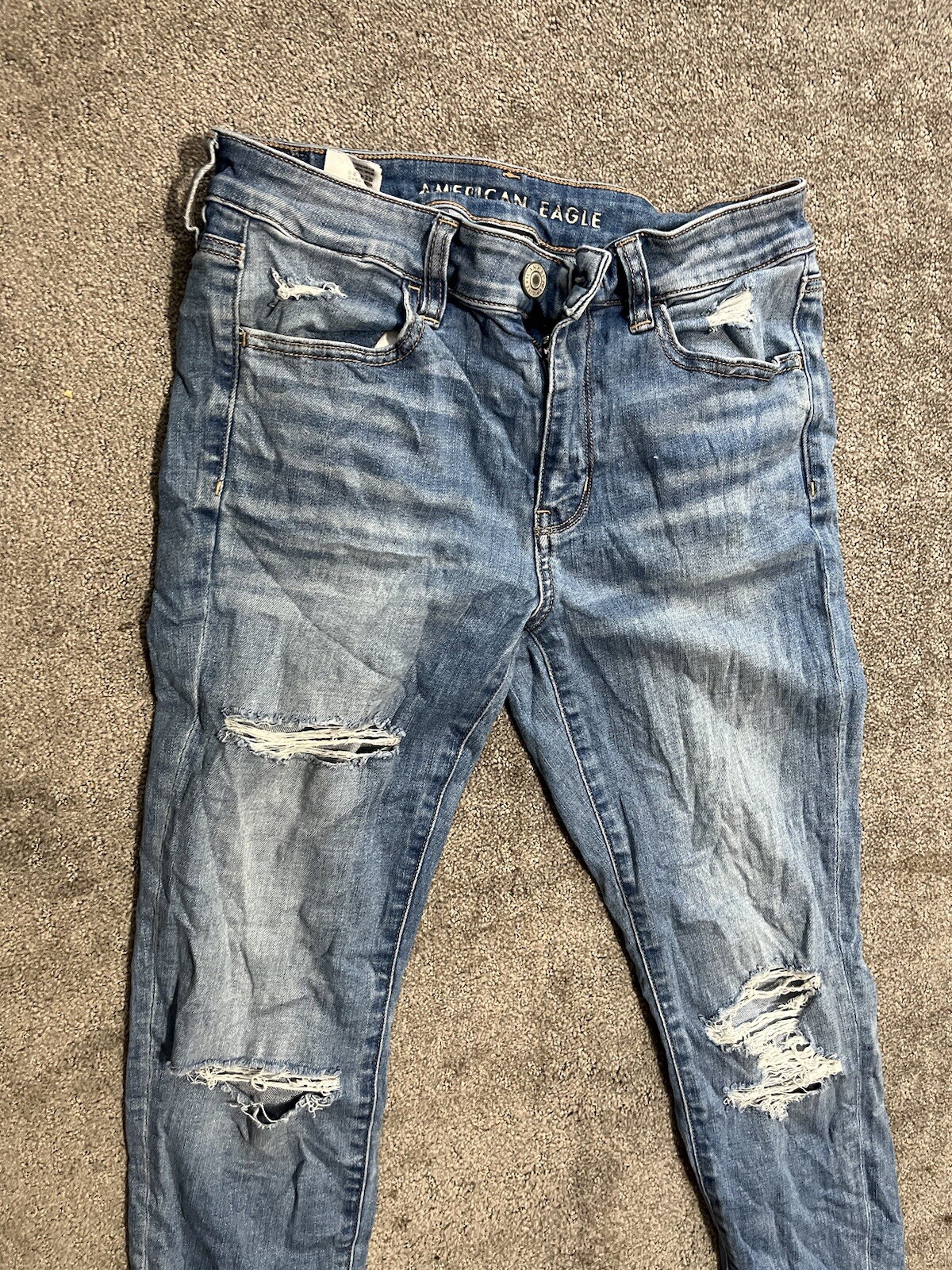 как выглядит American Eagle Blue Next Level Stretch Hi-Rise Jegging Pants Size 6 Reg Distres фото
