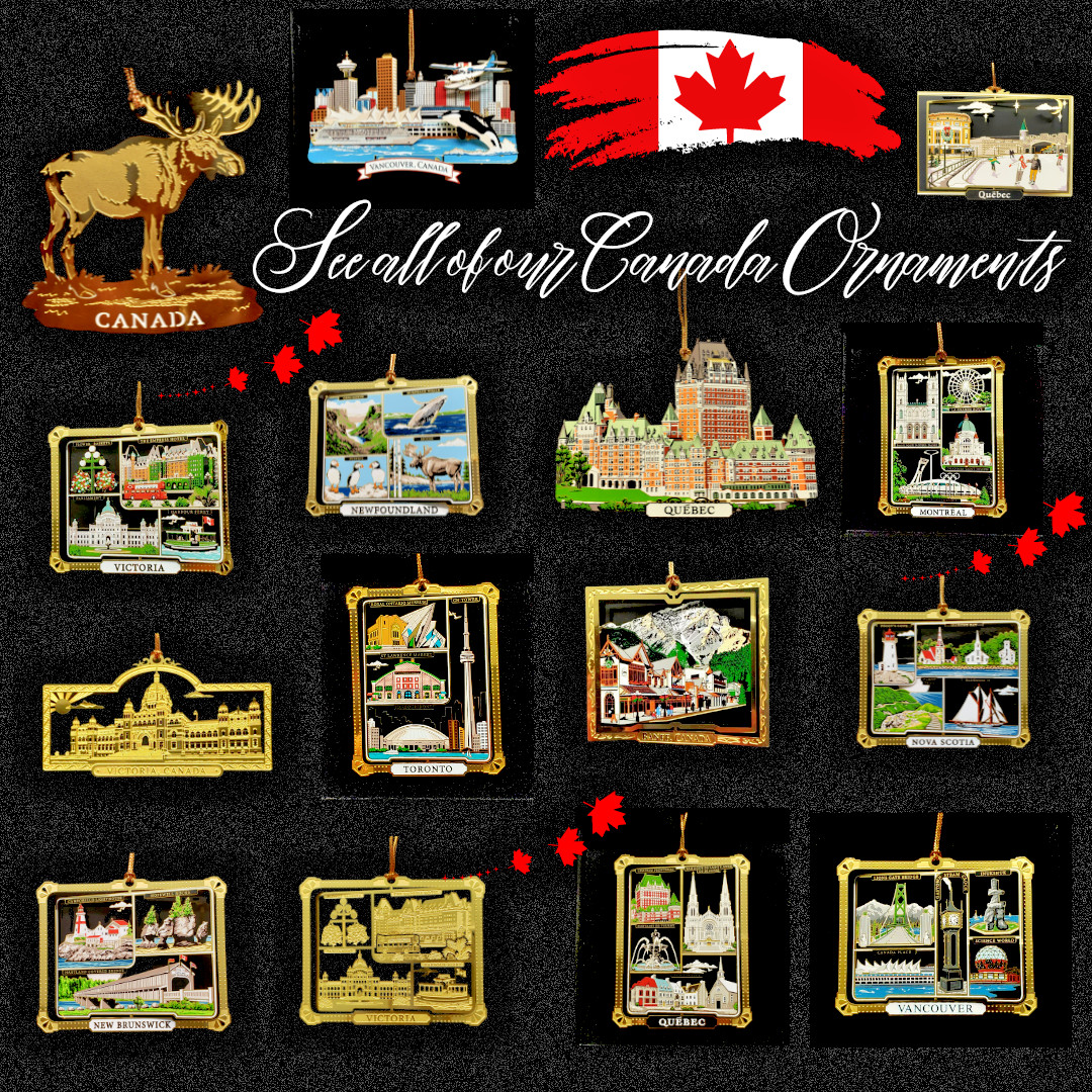 Vancouver Canada Ornament 2D Waterfront City Skyline Color Brass Whale Sea Plane