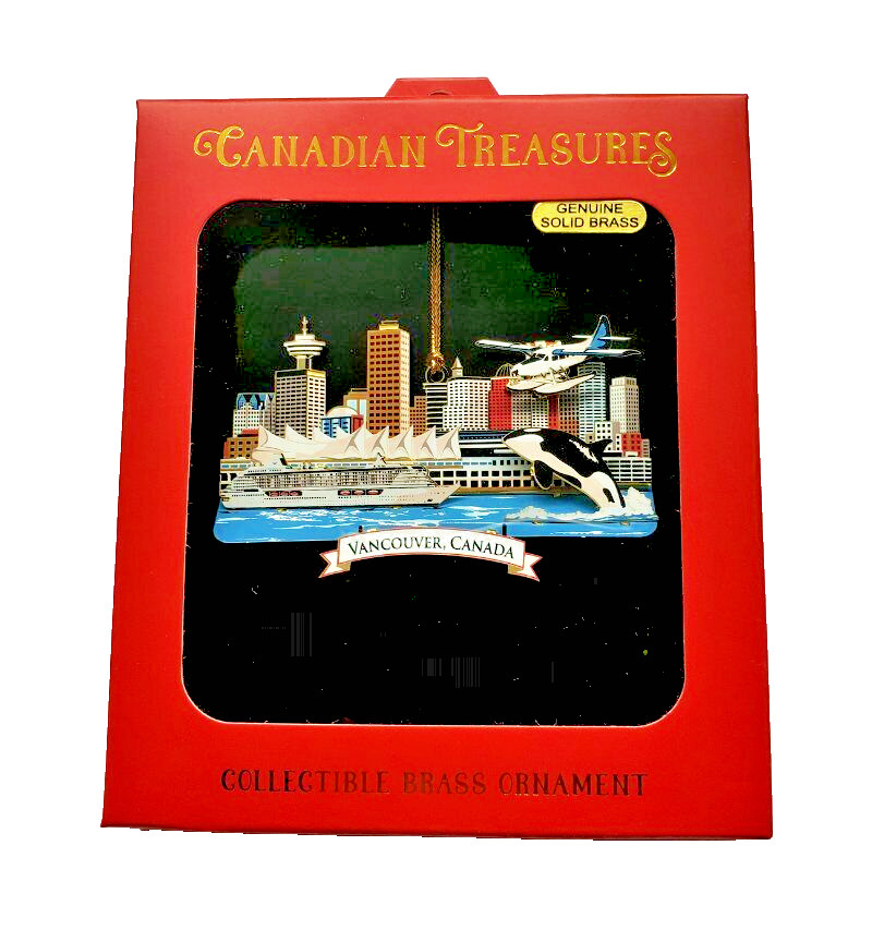 как выглядит Vancouver Canada Ornament 2D Waterfront City Skyline Color Brass Whale Sea Plane фото
