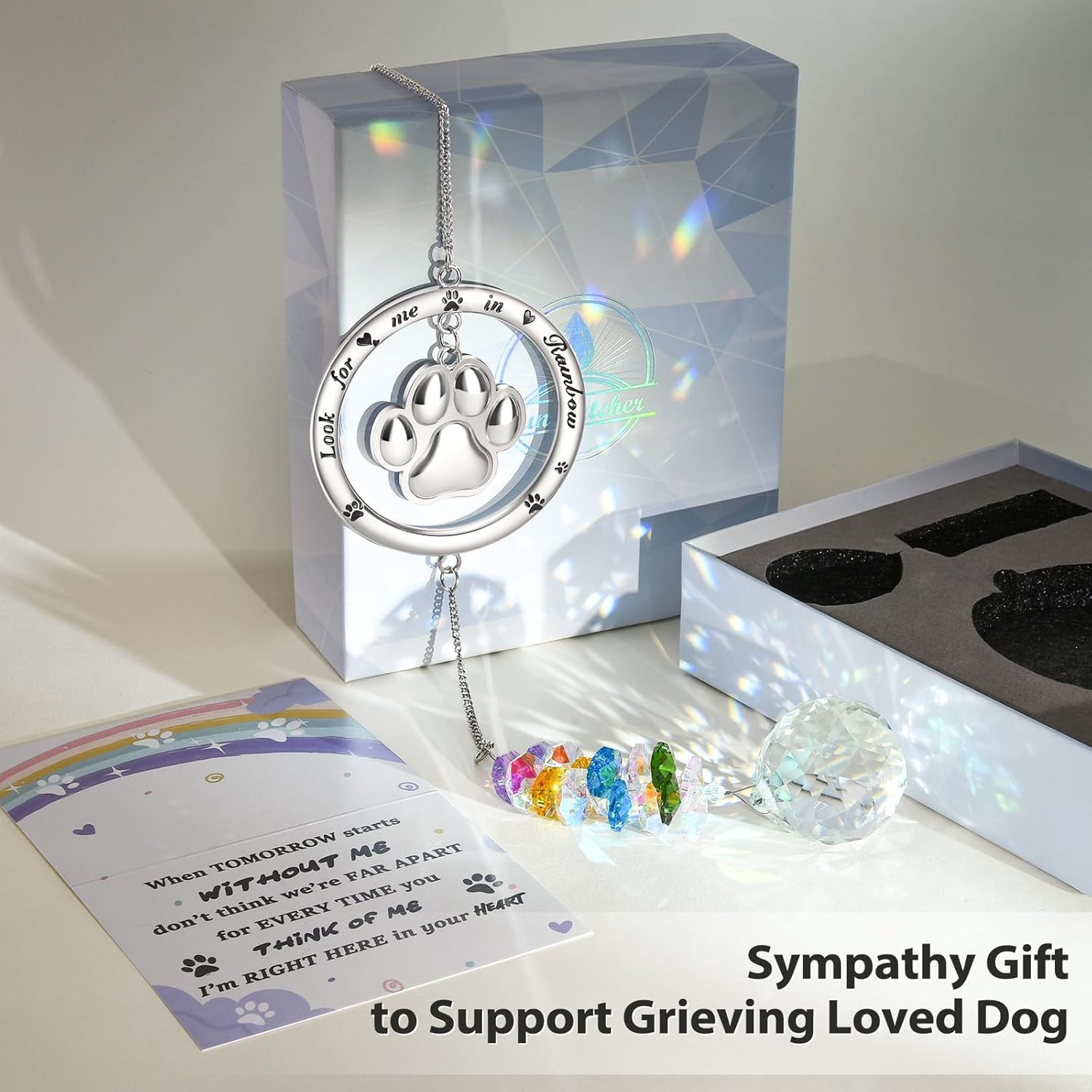 Sun Catcher Paw Print Sympathy Gift for Dog Lover - Rainbow Maker Hanging Dog Pa
