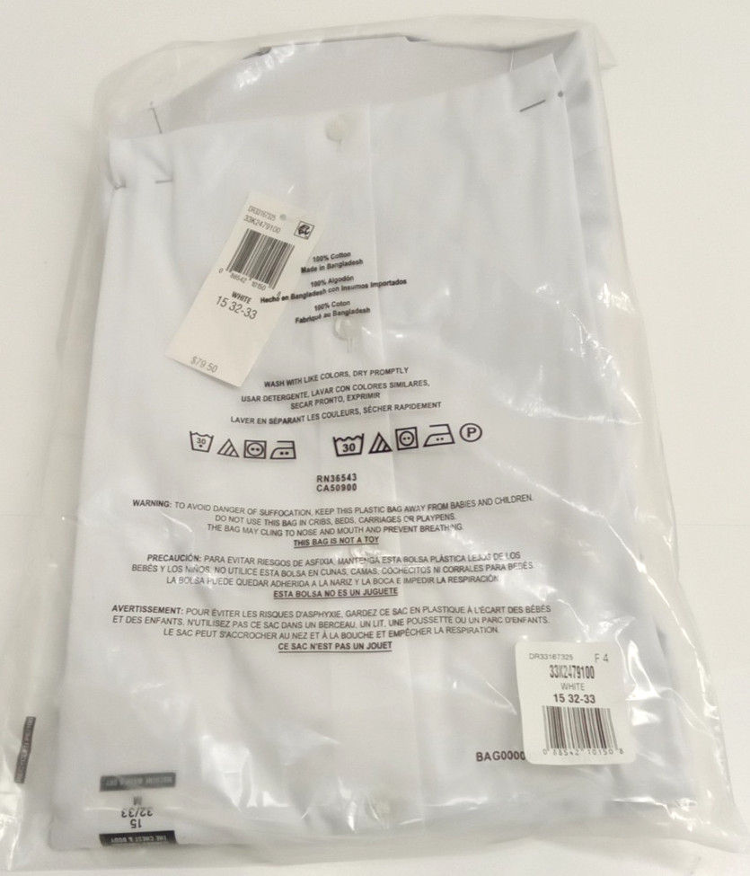 Calvin Klein Men's Steel Slim Fit Herringbone Dress Shirt White 15/32/33 M