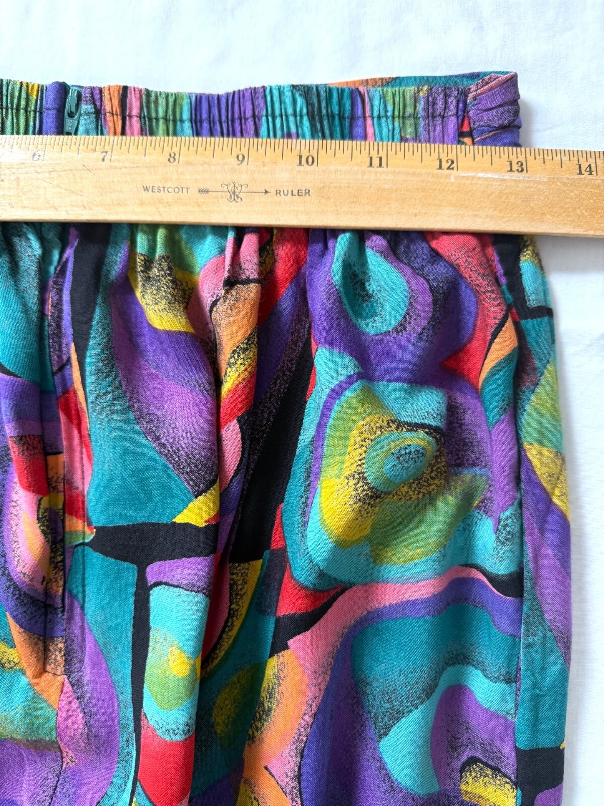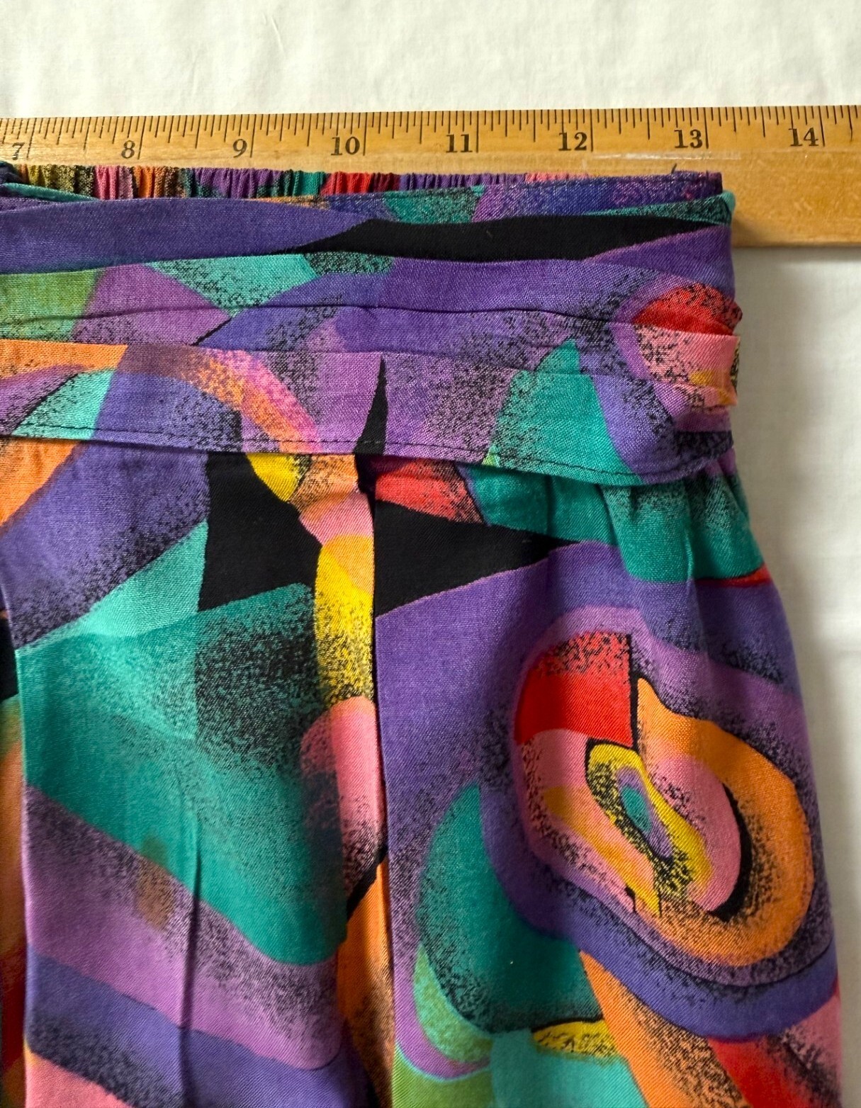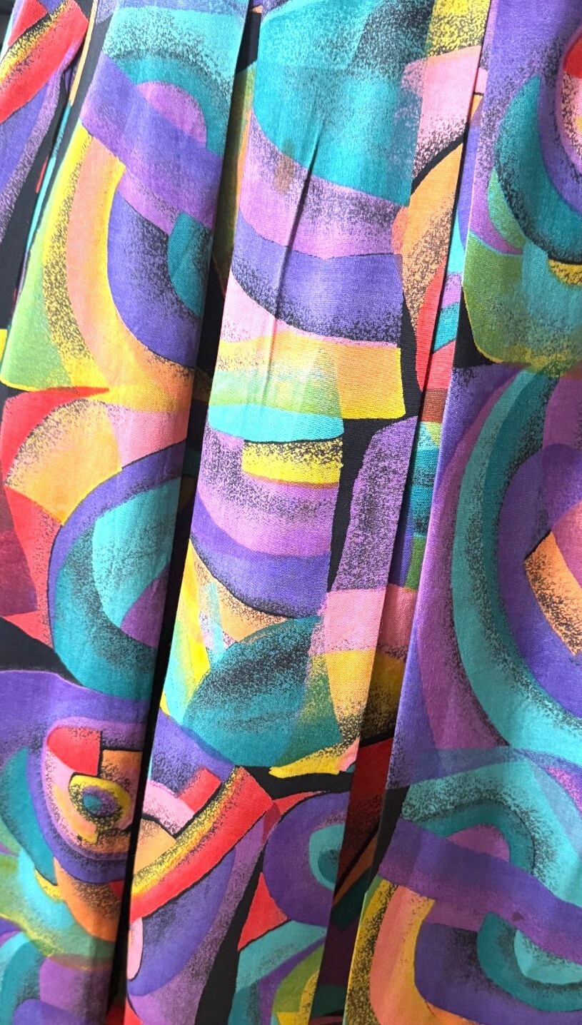 как выглядит Vtg 80s Artsy Disco Womens Skirt M Multi Pleated In Group Hippy Abstract Festive фото