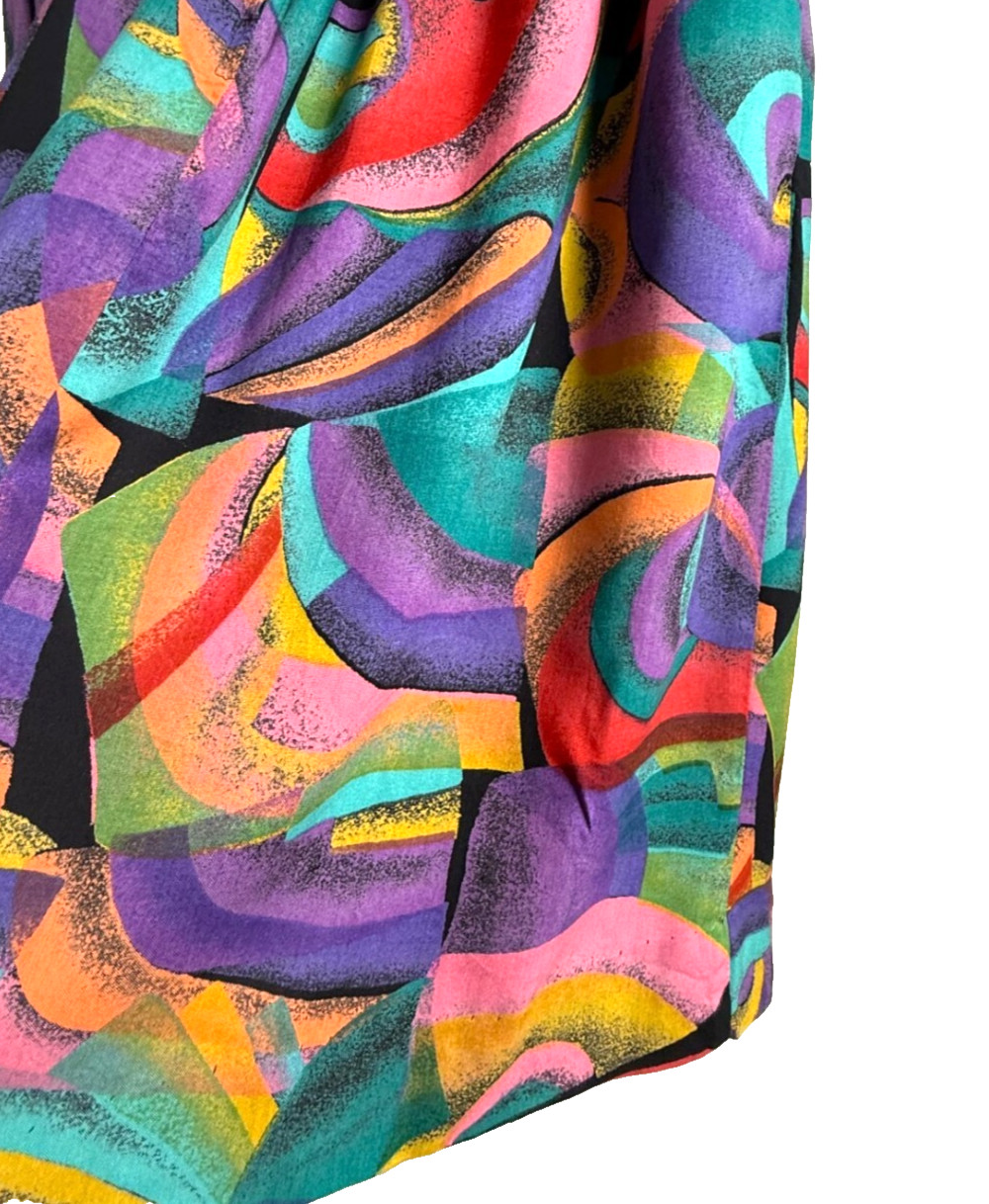Vtg 80s Artsy Disco Womens Skirt M Multi Pleated In Group Hippy Abstract Festive