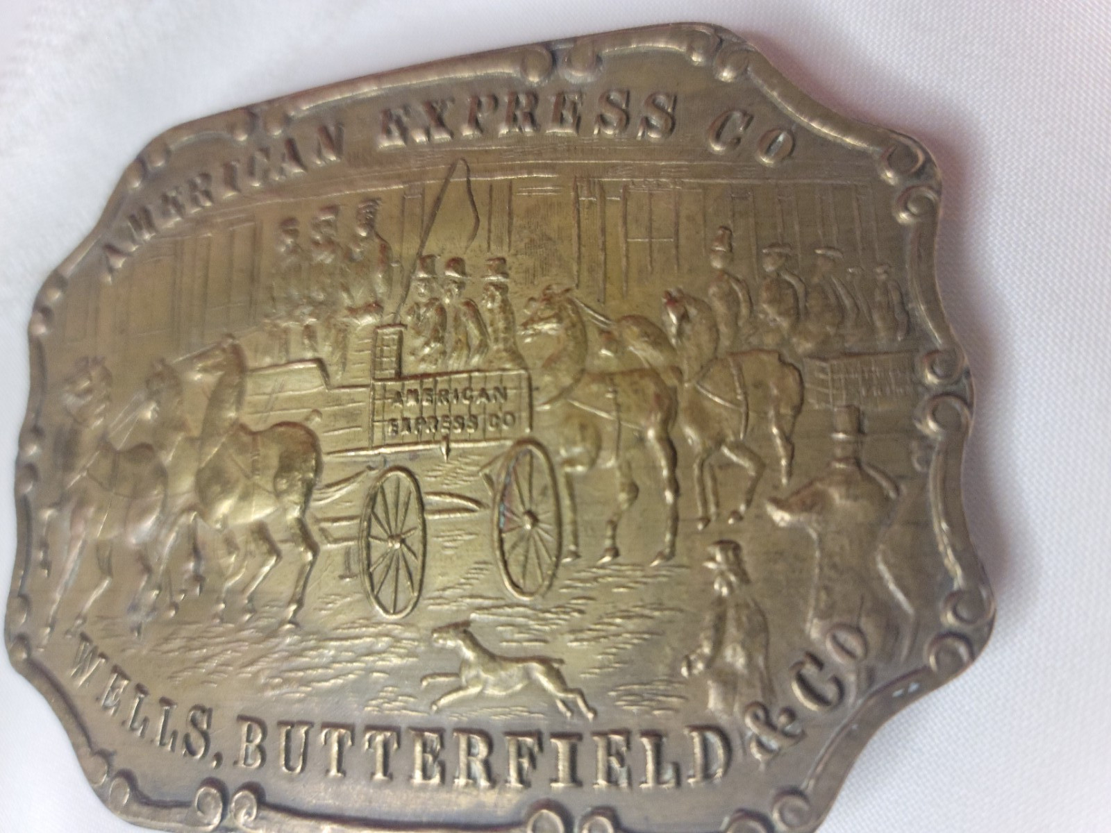 Vtg AMERICAN EXPRESS COMPANY Belt Buckle Brass WELLS BUTTERFIELD CO Tiffany