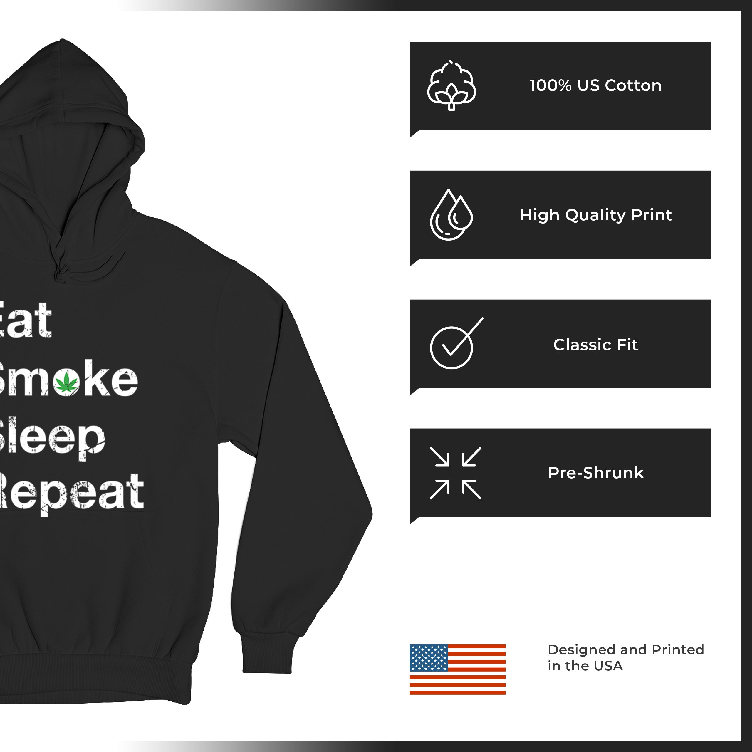 Eat Smoke Sleep Repeat Sweatshirt Cannabis Weed 420 Funny Marijuana Hoodie