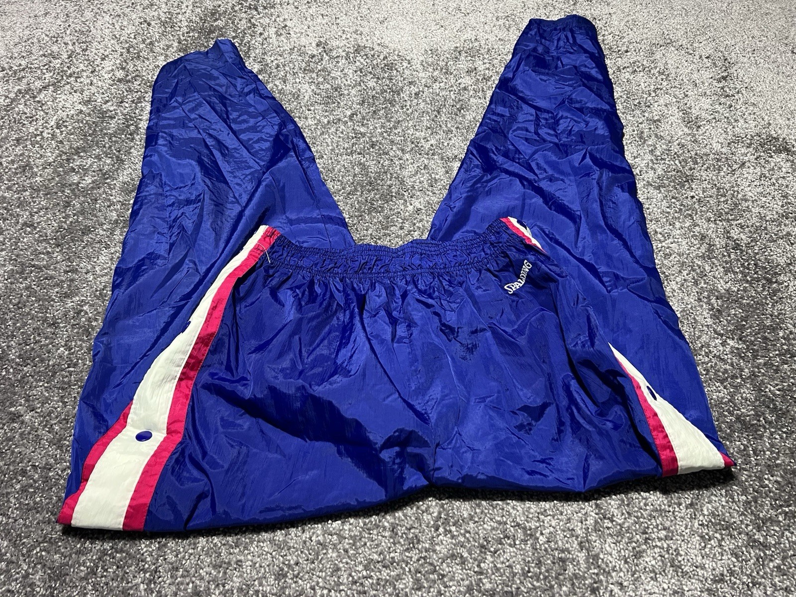 как выглядит Spalding TEAR-AWAY PANTS Nylon Snap Purple Hot Pink X-Large Vintage 1980 s фото