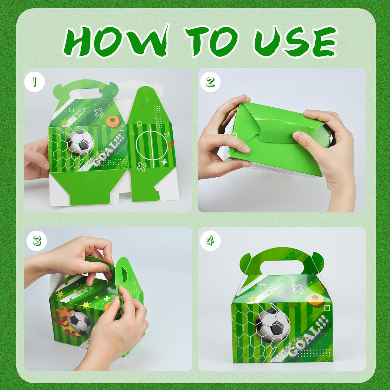 24 PCS Soccer Party Treat Bags, Soccer Theme Birthday Boxes for Sports Theme Bir