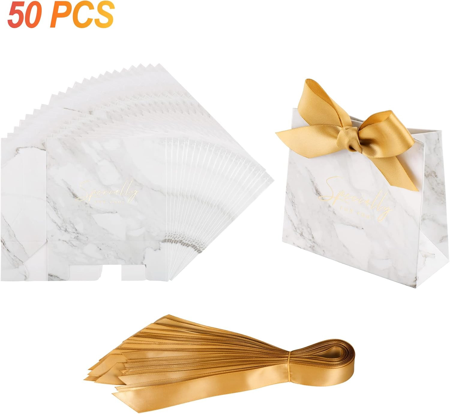 50 Pcs Wedding Party Favor Boxes, Small Thank You Gift Bags Candy Boxes with Gol