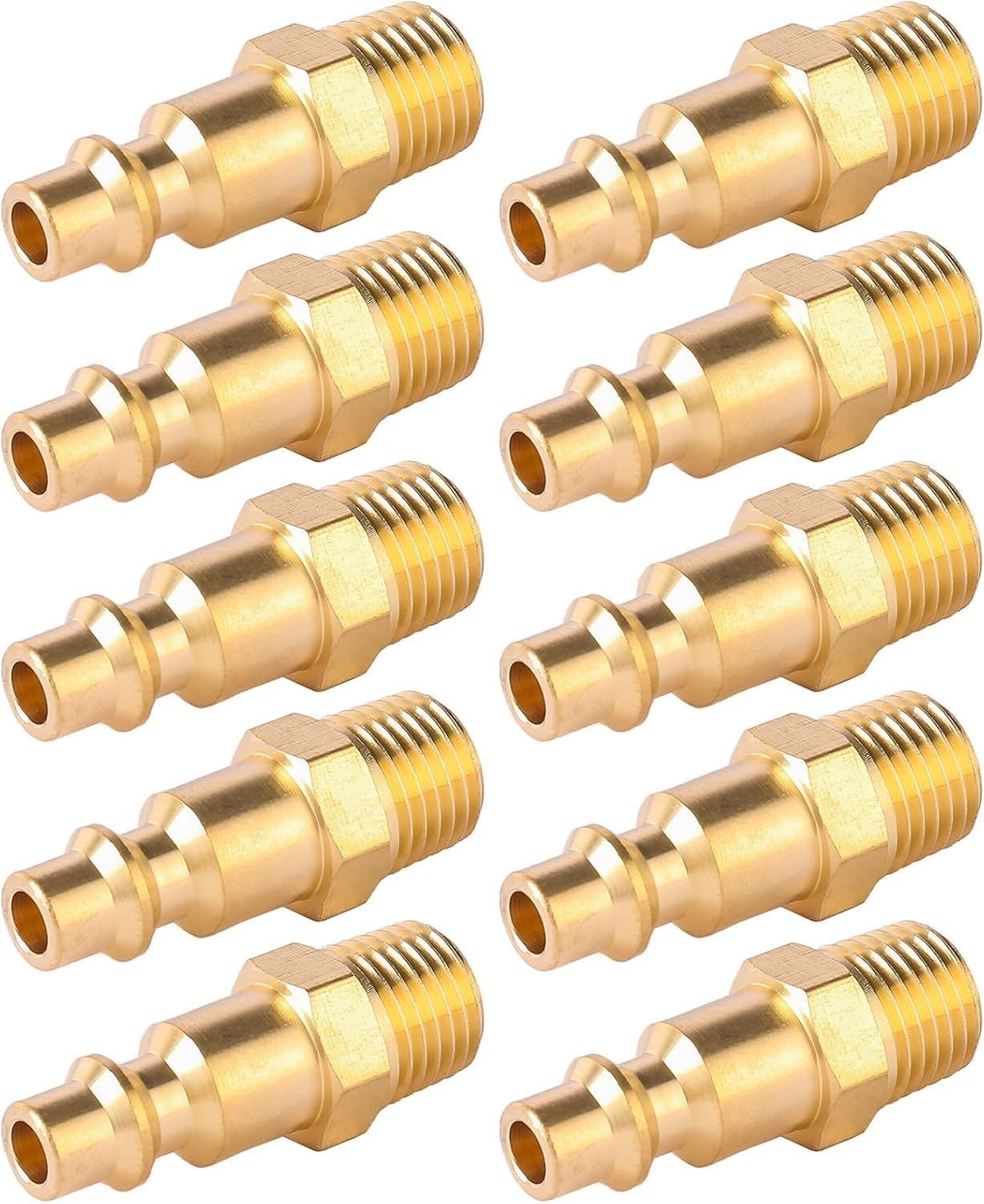 10 PCS Brass 1/4Inch NPT Male Industrial Air Hose Quick Connect Adapter Coupler