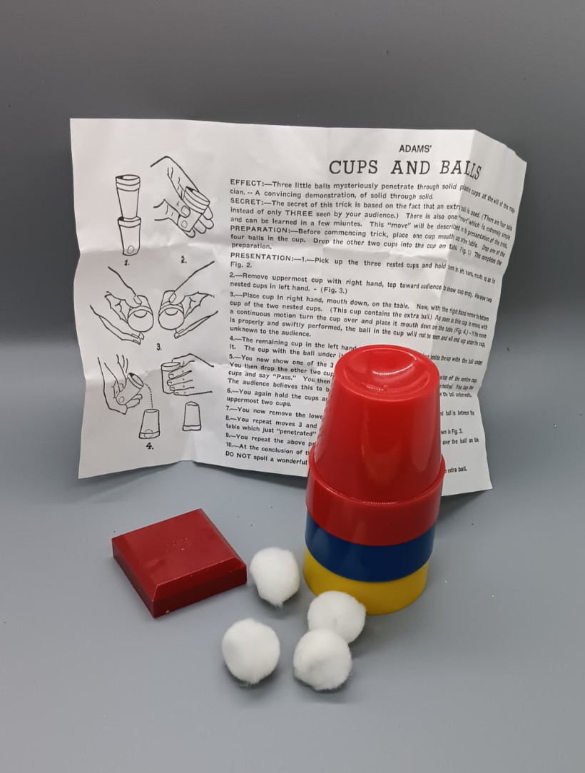 • Adams CUPS and BALLS Magic Trick Set INSTRUCTIONS Key Puzzle - Mystery Item