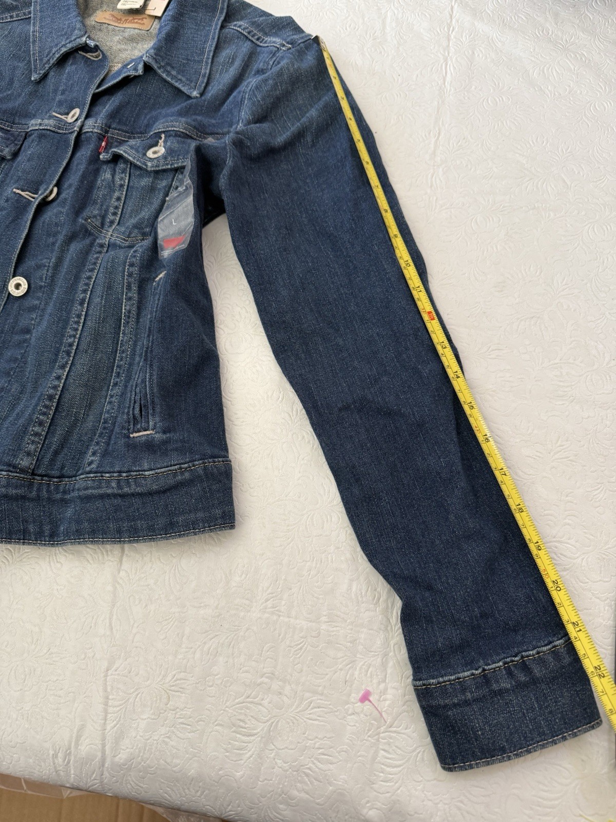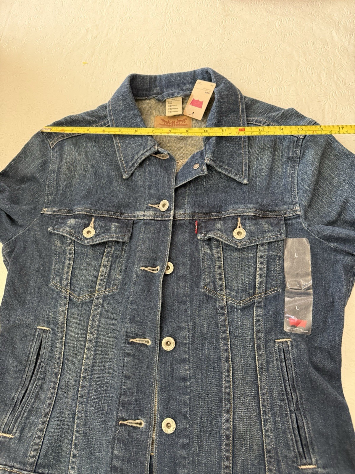 как выглядит Levis Youth Size Large Denim Trucker Jacket Button Front Medium Wash New W Tag фото