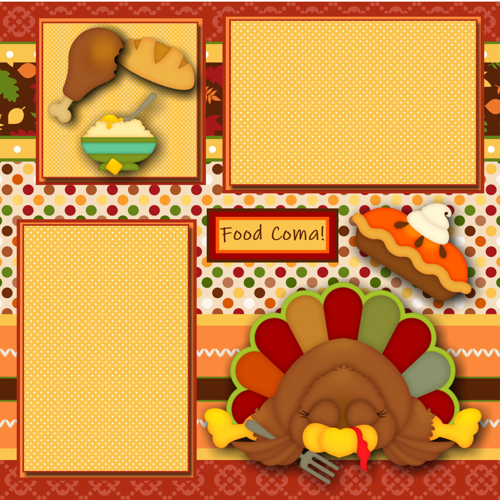 TURKEY EFFECT THANKSGIVING Premade Scrapbook Pages paper printed layout DBDS