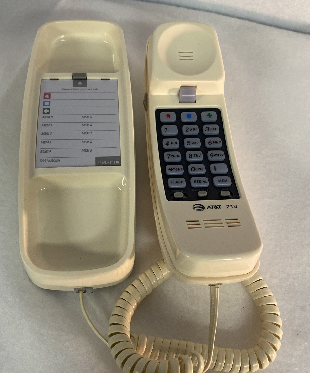 • Push Button Telephone AT T Trimline 210 Long Cord Wall or Desk Works