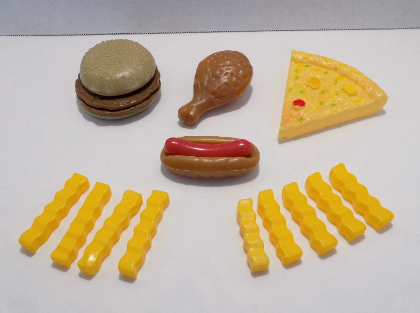 Total Quantity – 17 pieces: Burgers Bun Chicken Leg Hot dog w Bun Pizza Slice French Fries