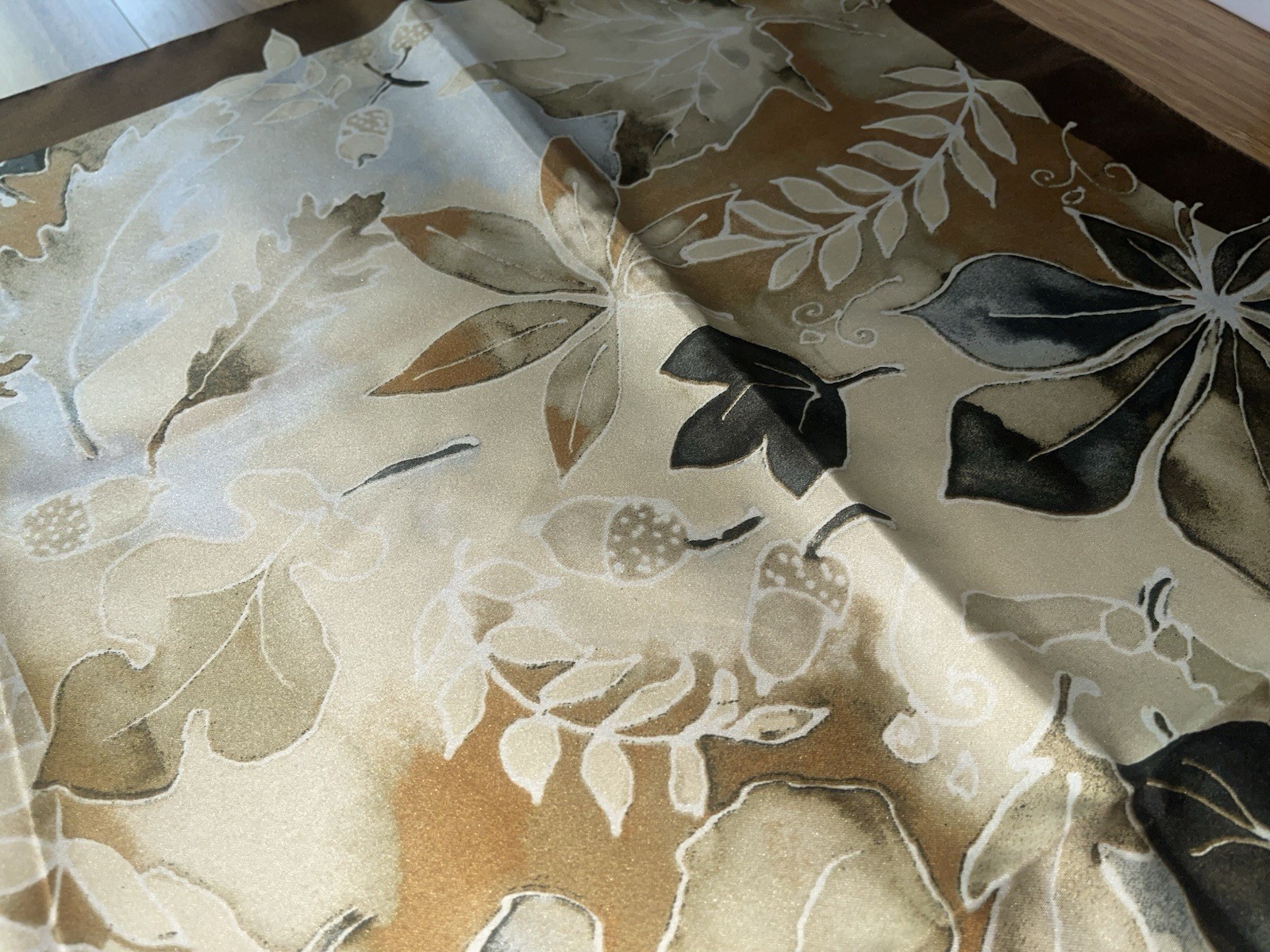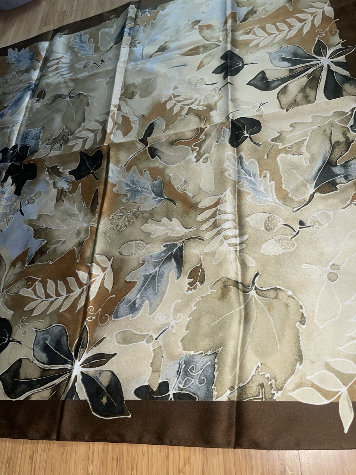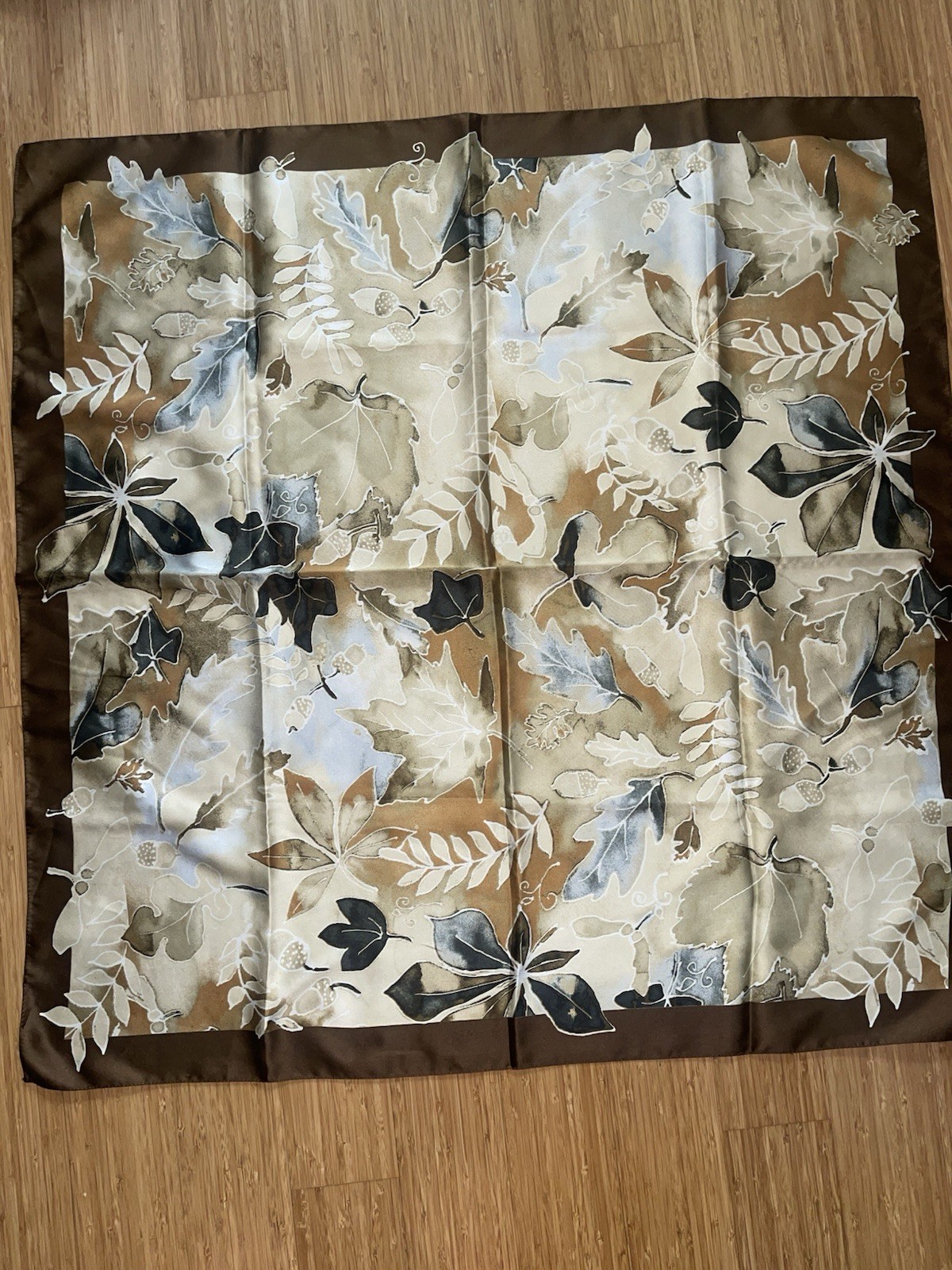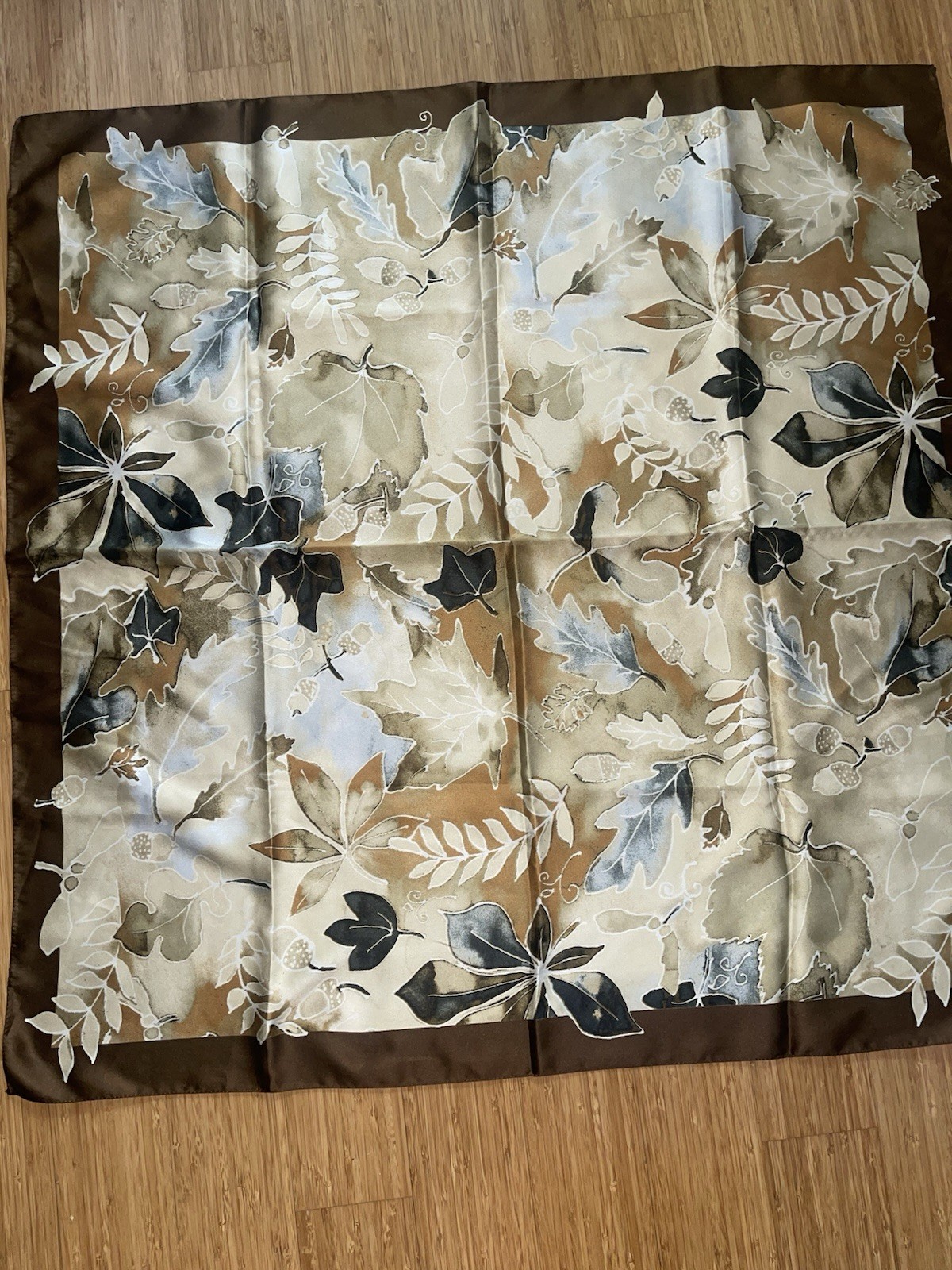 Botanical Floral Symphony Scarf Shawl Tan Ivory Italian Polyester Microfiber 34