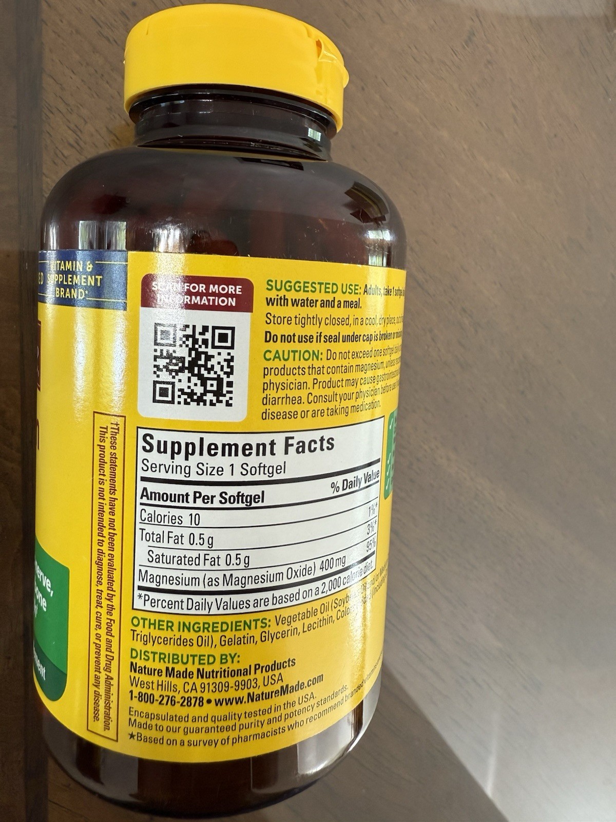как выглядит Nature Made Extra Strength Magnesium 400 mg 180 Liquid Softgels фото