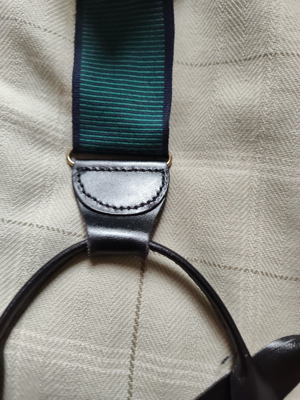 Vintage Green Black Solid Brass Leather Suspenders READ