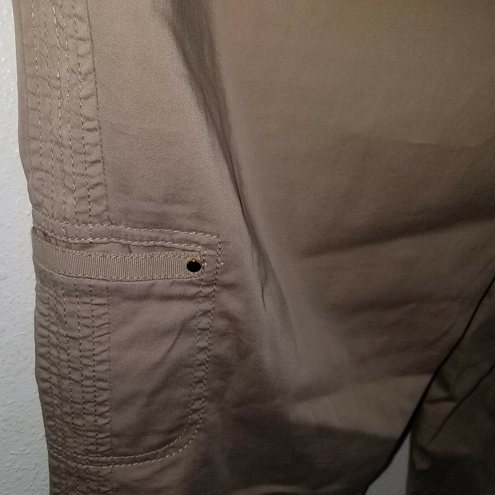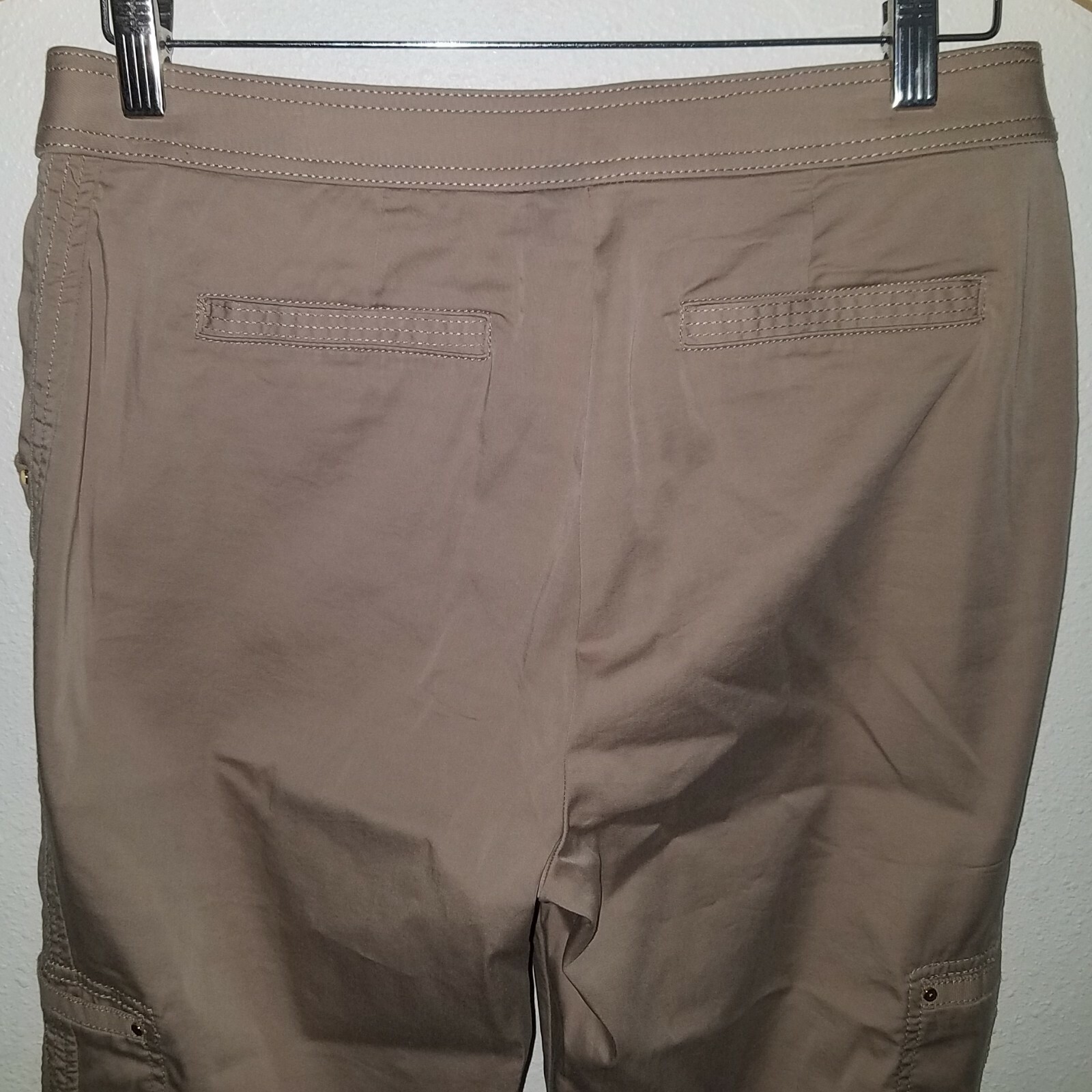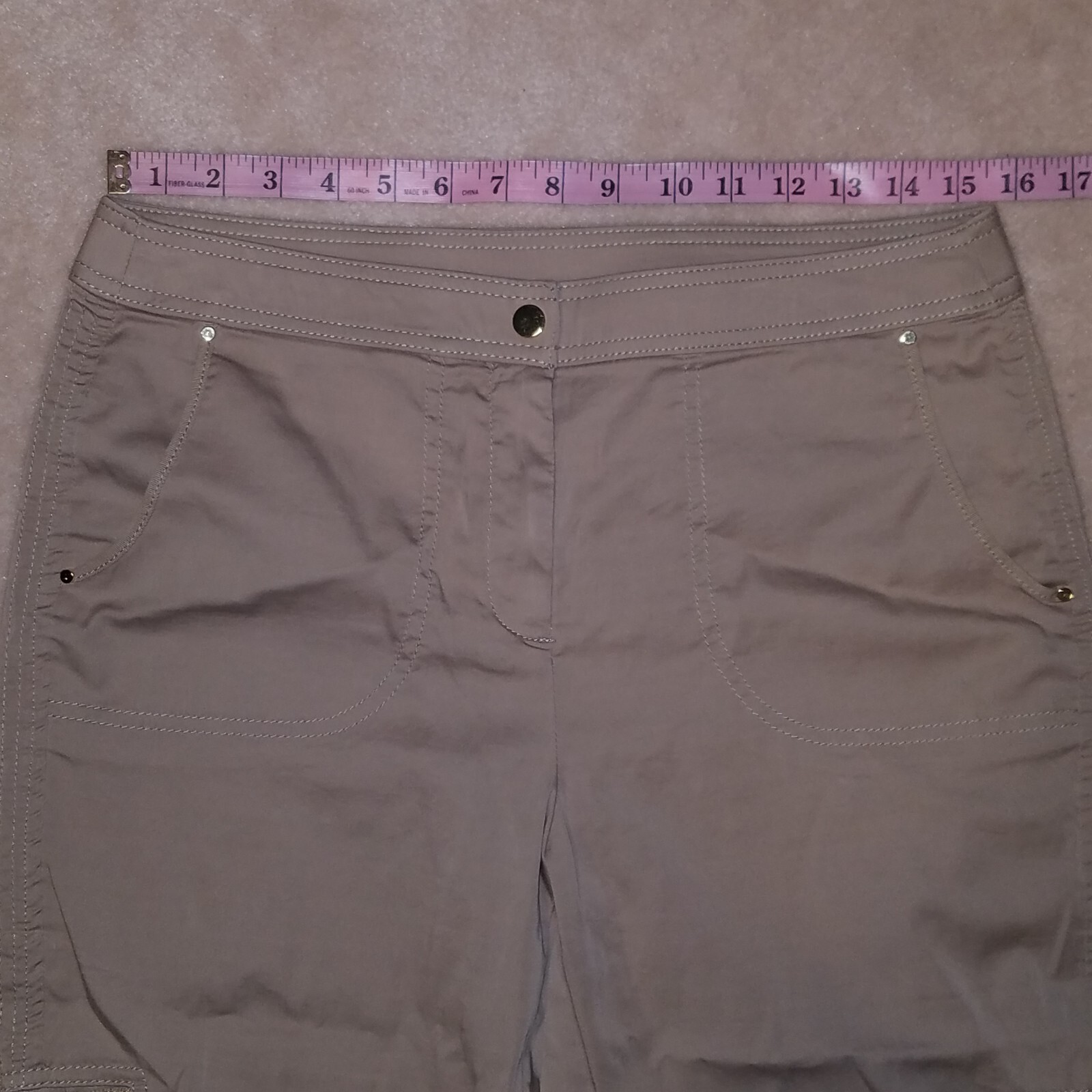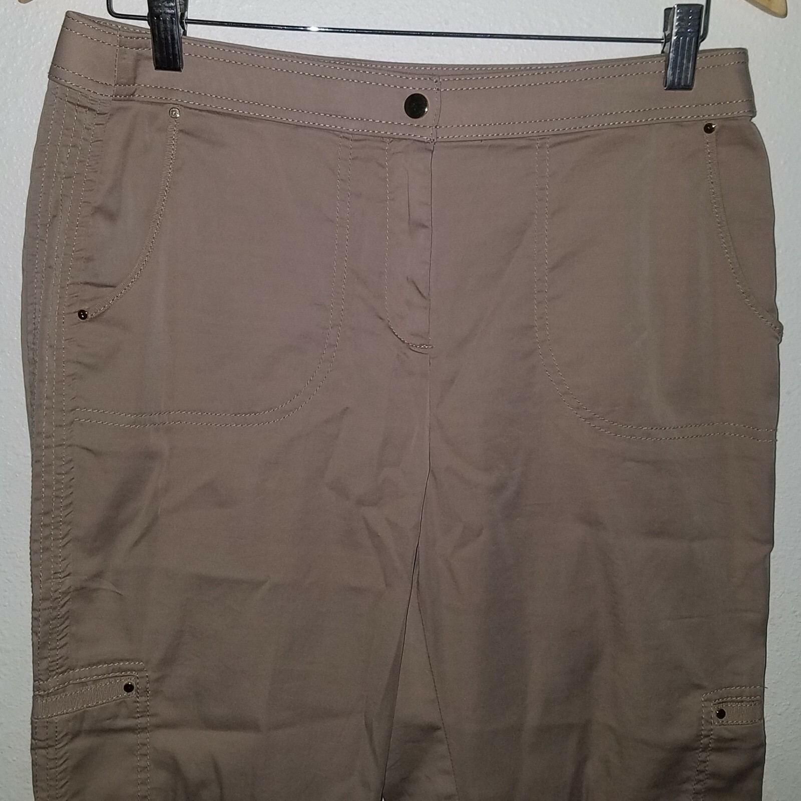 как выглядит Zenergy by Chicos Tan Capri Pants Size 1 Approx Medium/8 Gold Buttons Cuffed фото