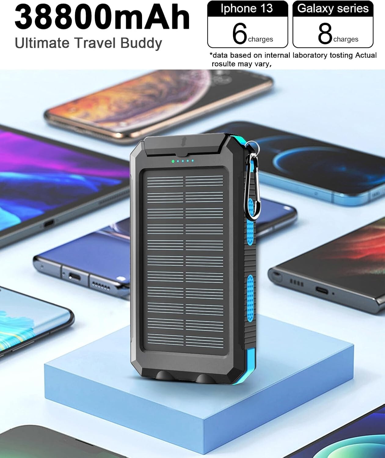 ERRBBIC 38800mAh Solar Power Bank, Waterproof Charger w/ Dual Flashlights