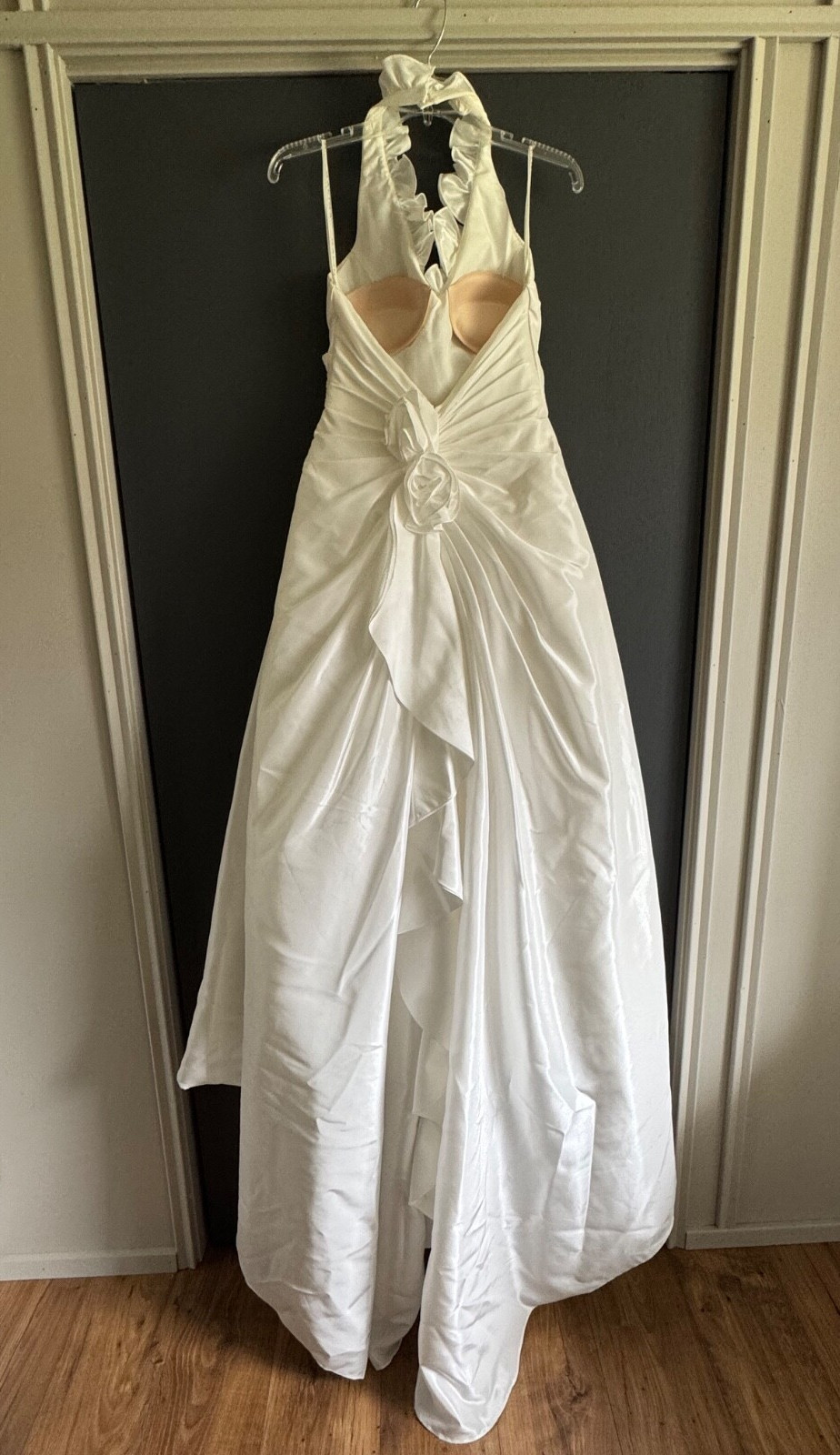 Galina Size 8 Soft White Taffeta Halter with Ruffles Style ES9899 Wedding Dress