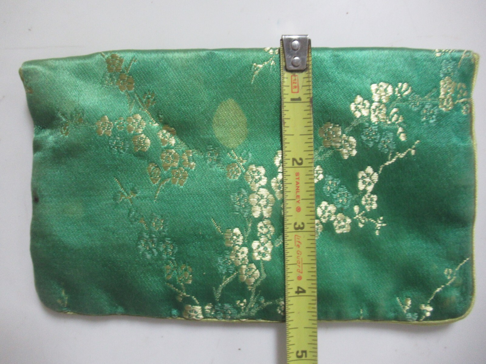 как выглядит Vtg Chinese Embroidered Silk Green Soft Clutch Bag w/ Zippered Pouch 7"x4.5" фото