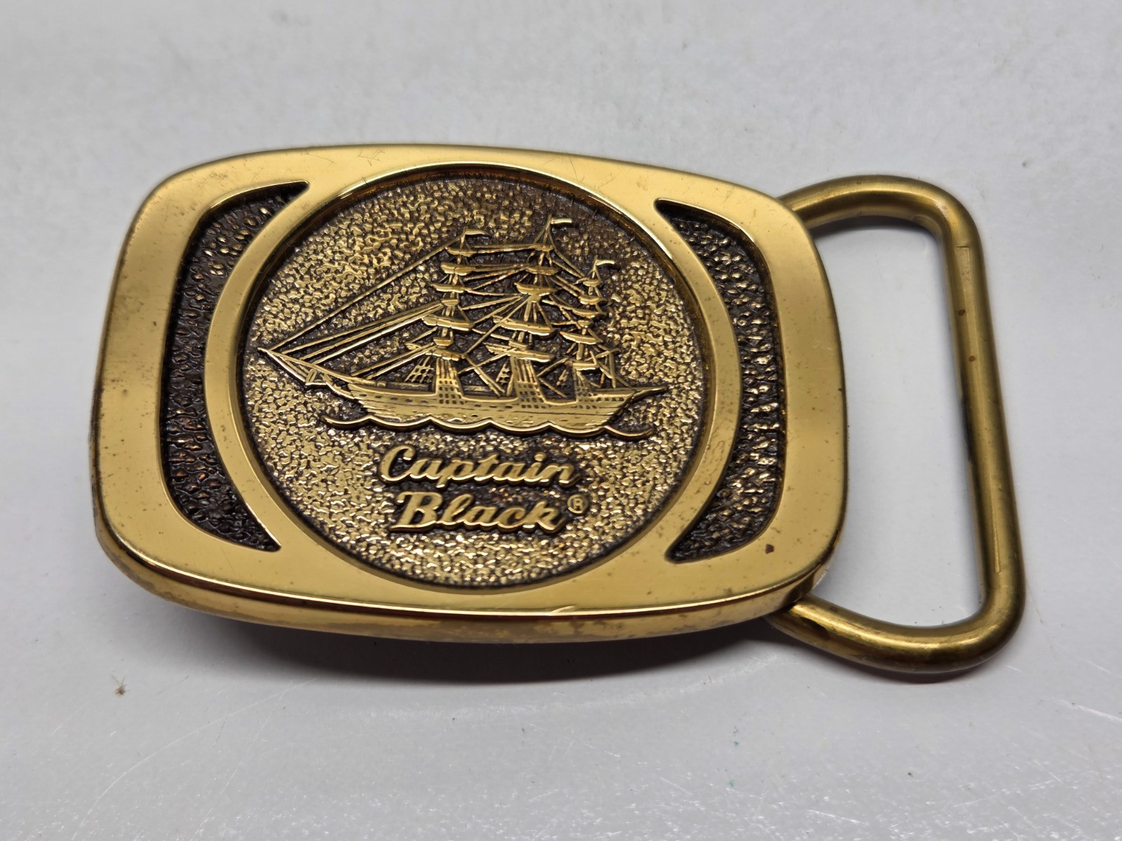 VINTAGE 1970s CAPTAIN BLACK PIPE TOBACCO SOLID BRASS BELT BUCKLE