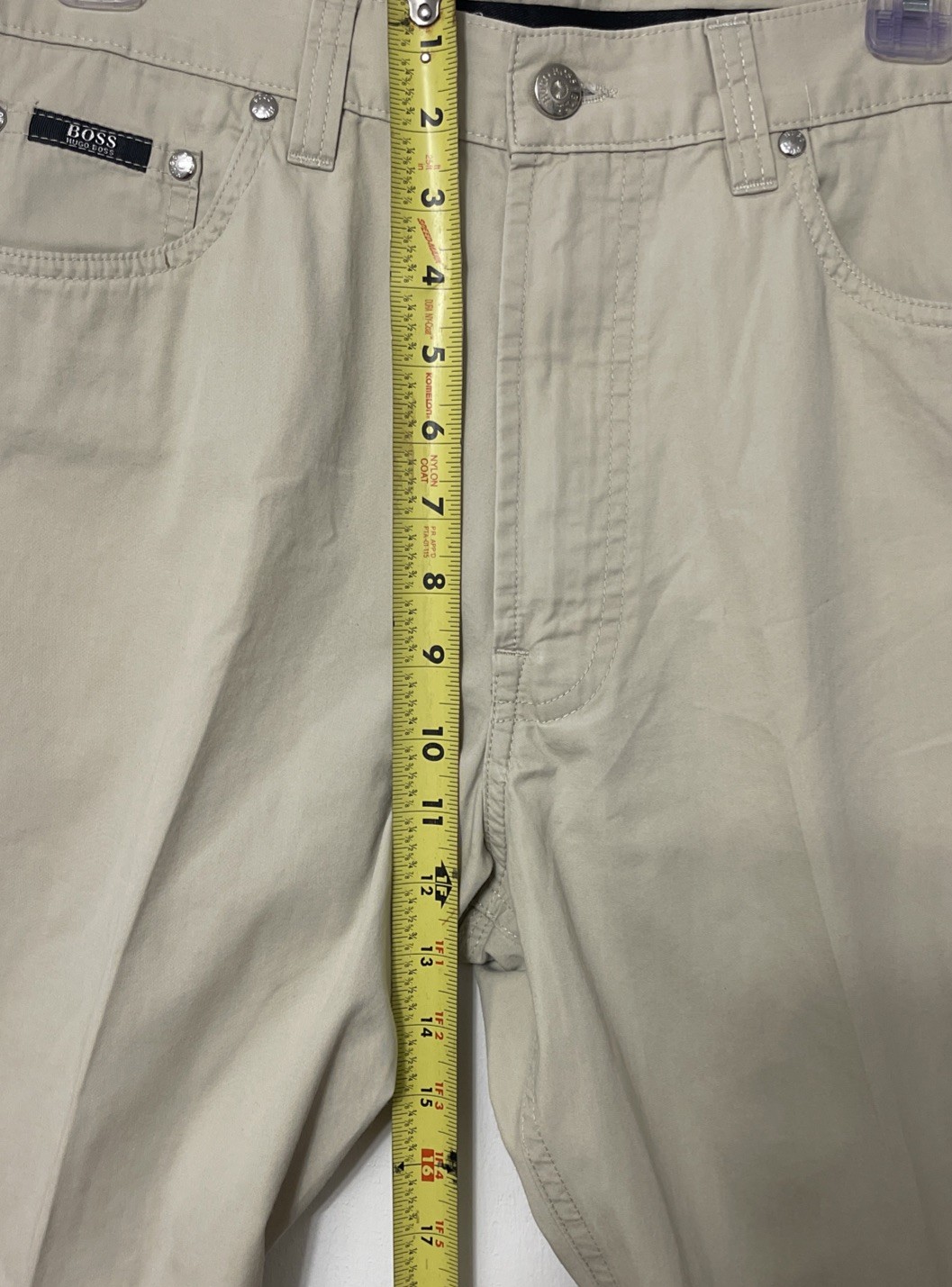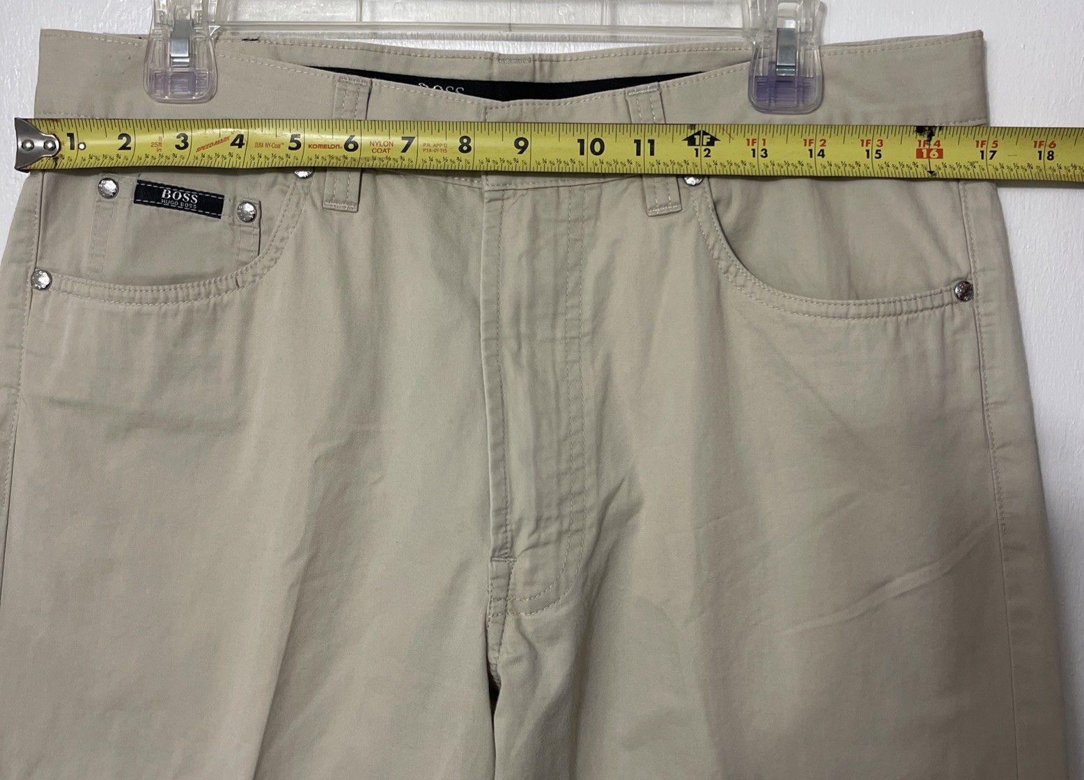Men s Hugo Boss Pants 35x34 Cream Flat Front Straight Leg Cotton Alabama Chino