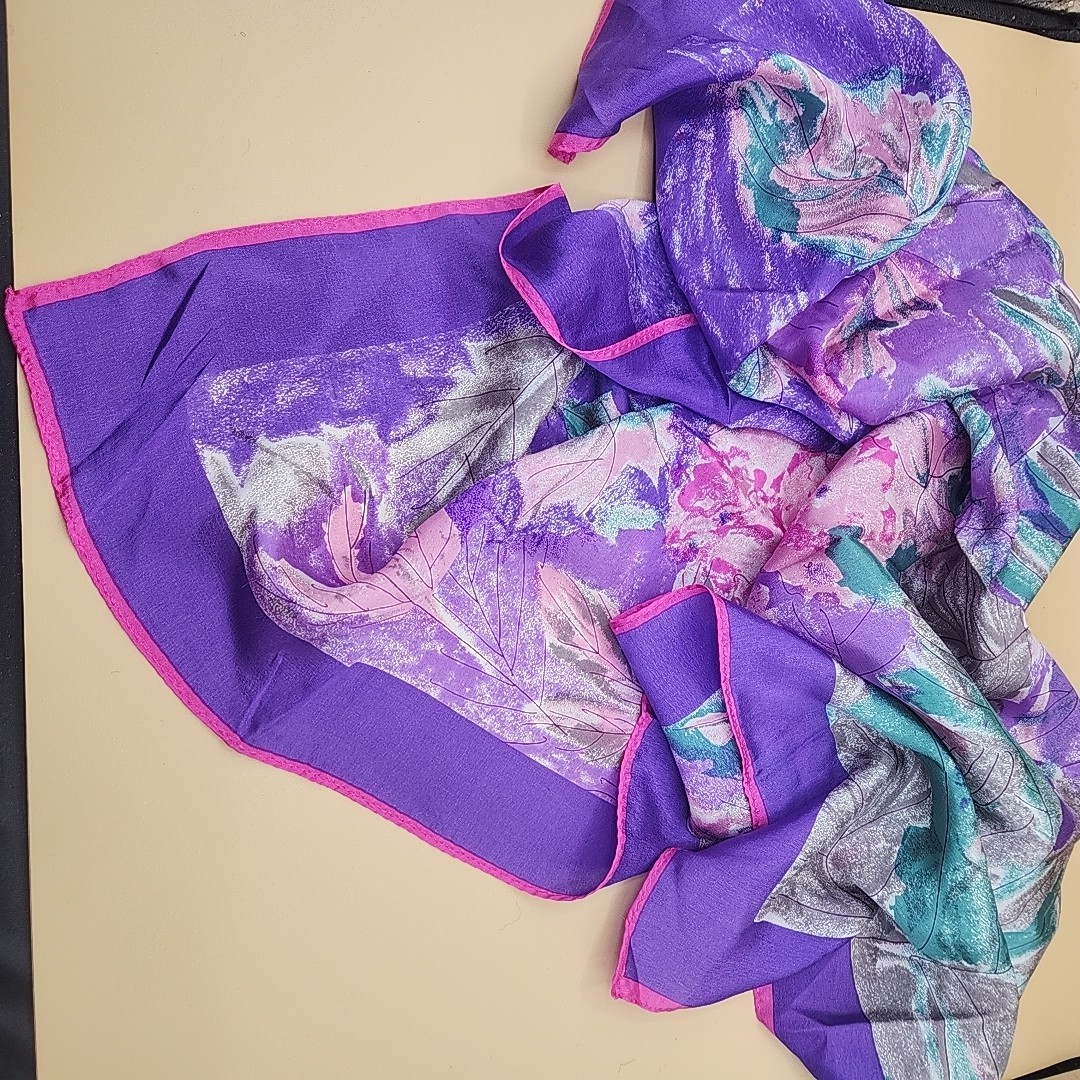 как выглядит Vera Neumann Scarf Silk Pink Purple Flowers Floral 29 Inch Square Japan Rolled фото